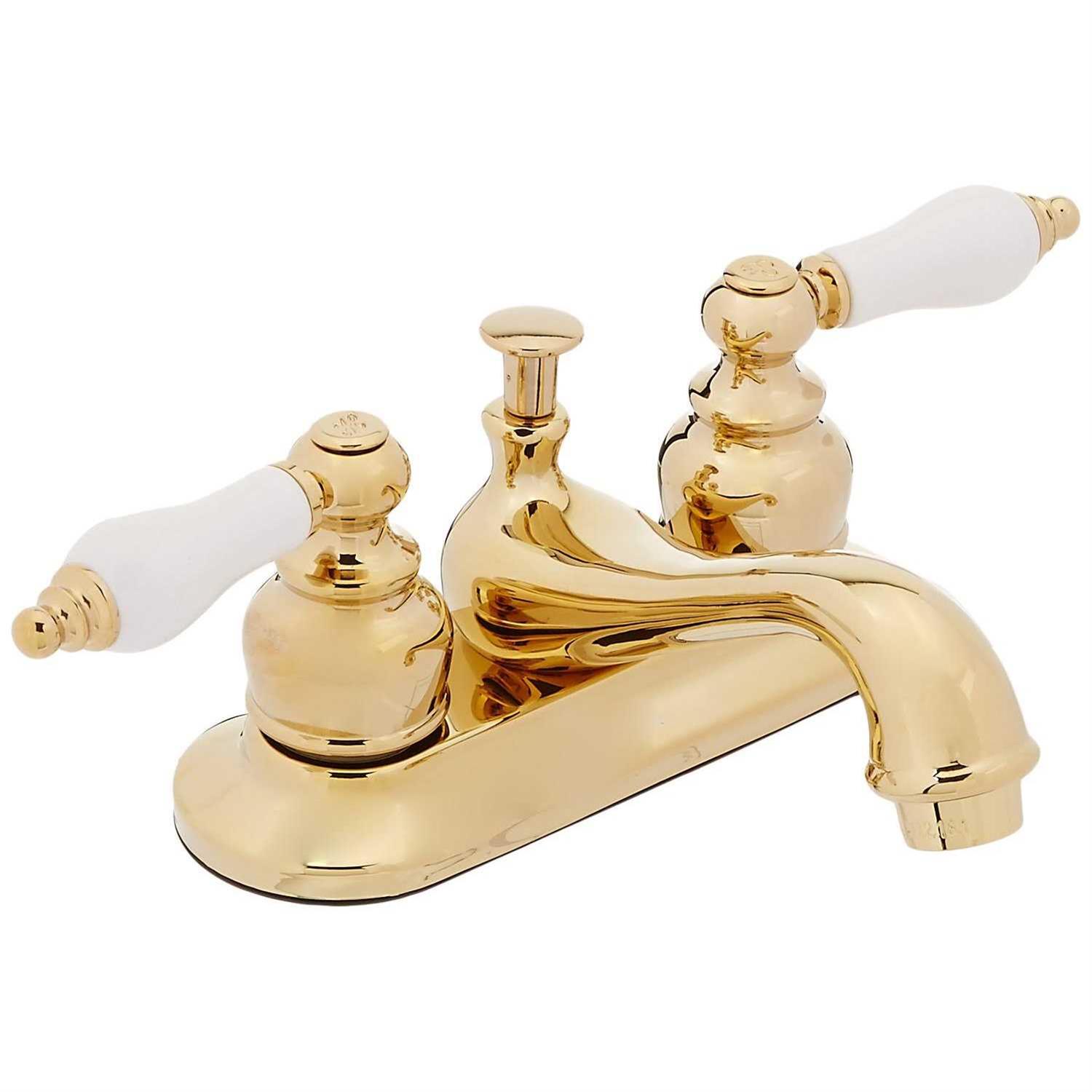 Includes a matching pop-up drain ceramic and oak handles DuraSeal washerless cartridge integrated removable aerator and 14-turn onoff water control mechanism. Fabricated from solid brass for durability and reliability. Premium color finish resists tarnishing and corrosion. Features a porcelain lever handle style.