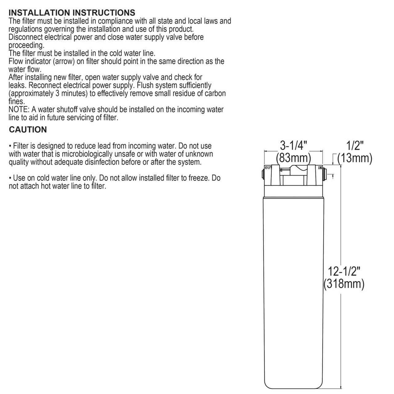 - Filter should be replaced every 750 Gal. or 1 year after installation