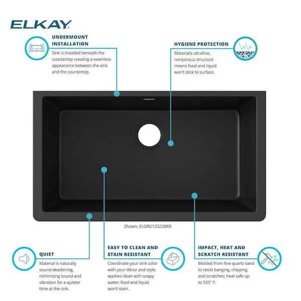 Elkay Quartz Classic 33 in. Single Bowl Undermount Kitchen Sink, Black