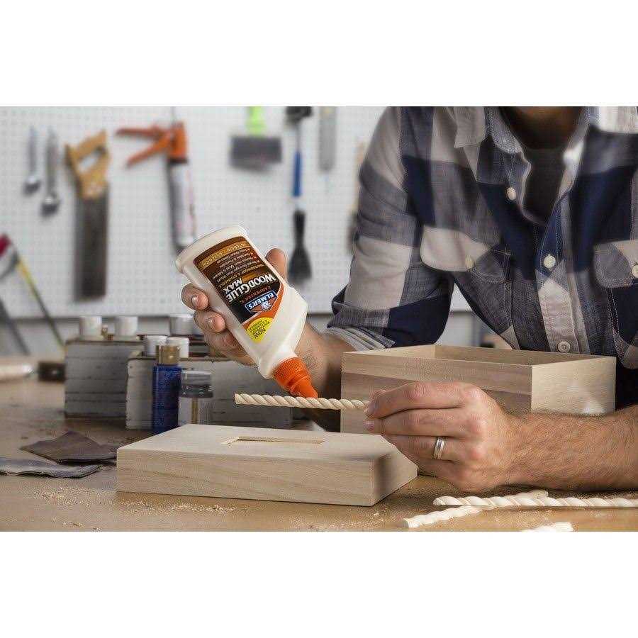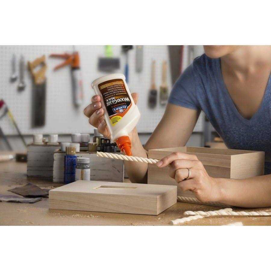 Elmer s carpenters wood glue max 16 oz. Only waterproof and stainable wood glue available patented formula delivers superior bond. Strength and stainability bonds to wood. Metal. Plastic and stone resists heat.