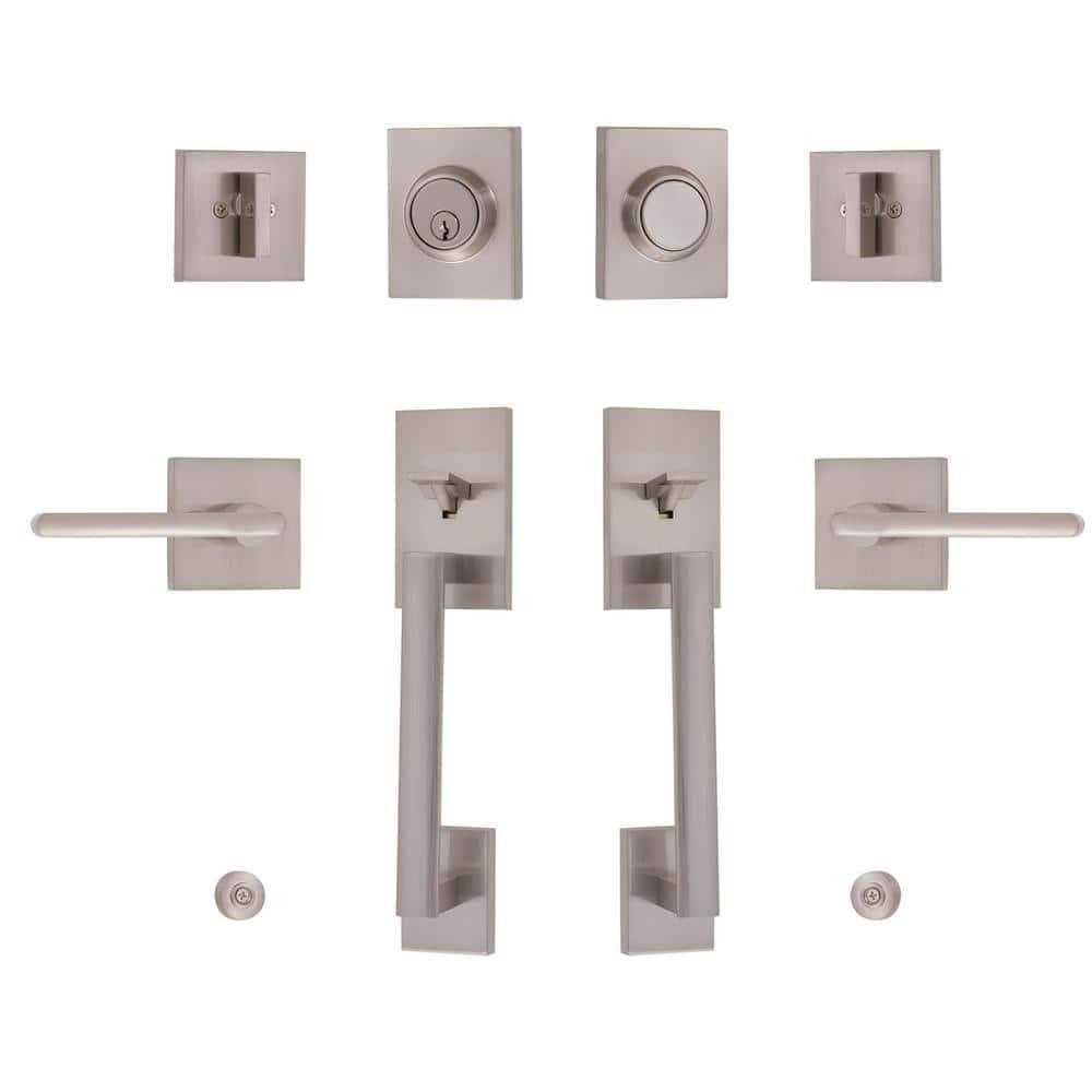 eModernDecor CozyBlock Arch Lever, Brushed Nickel Double Door Handlesets w/Single Cylinder Deadbolt, Entry Door Lock Sets w/Dummy