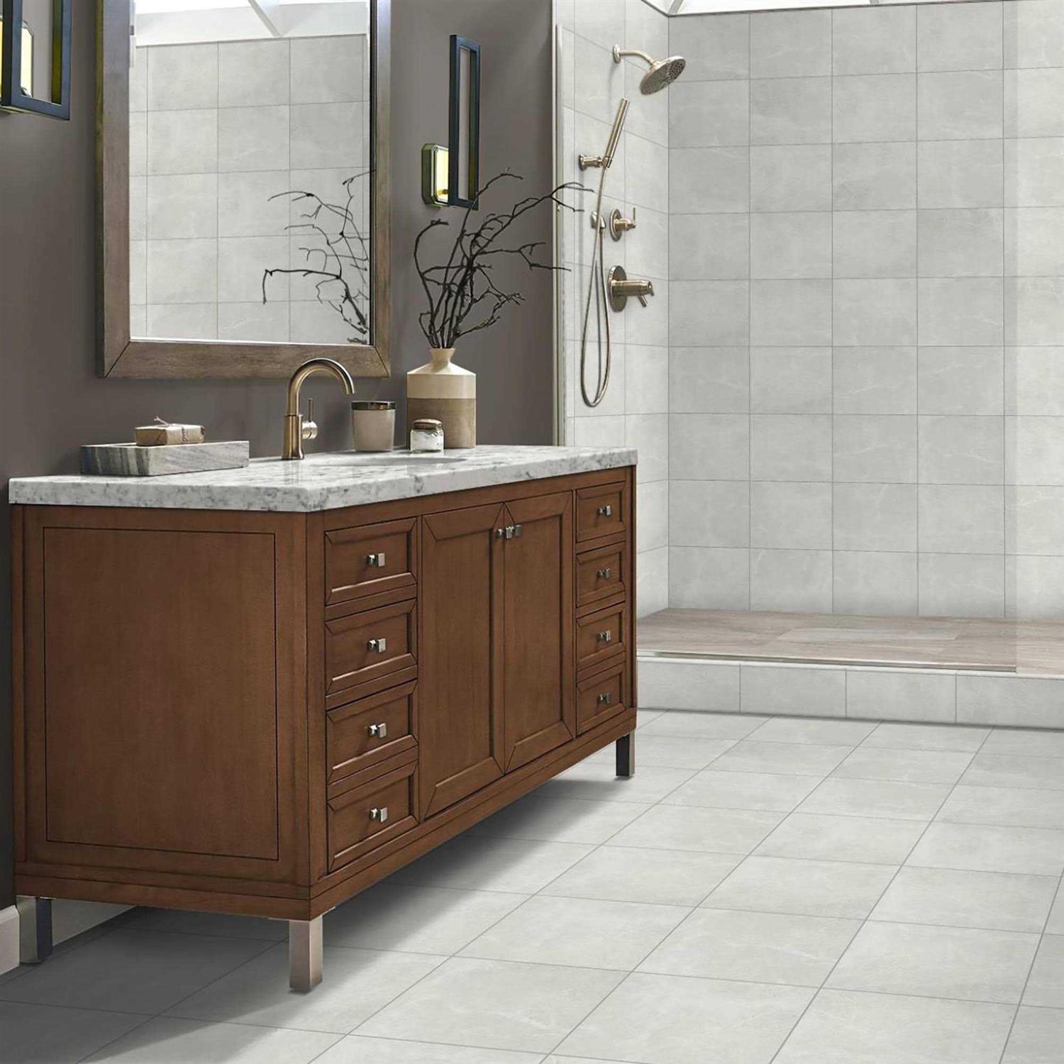 - Porcelain tile with a matte finish.