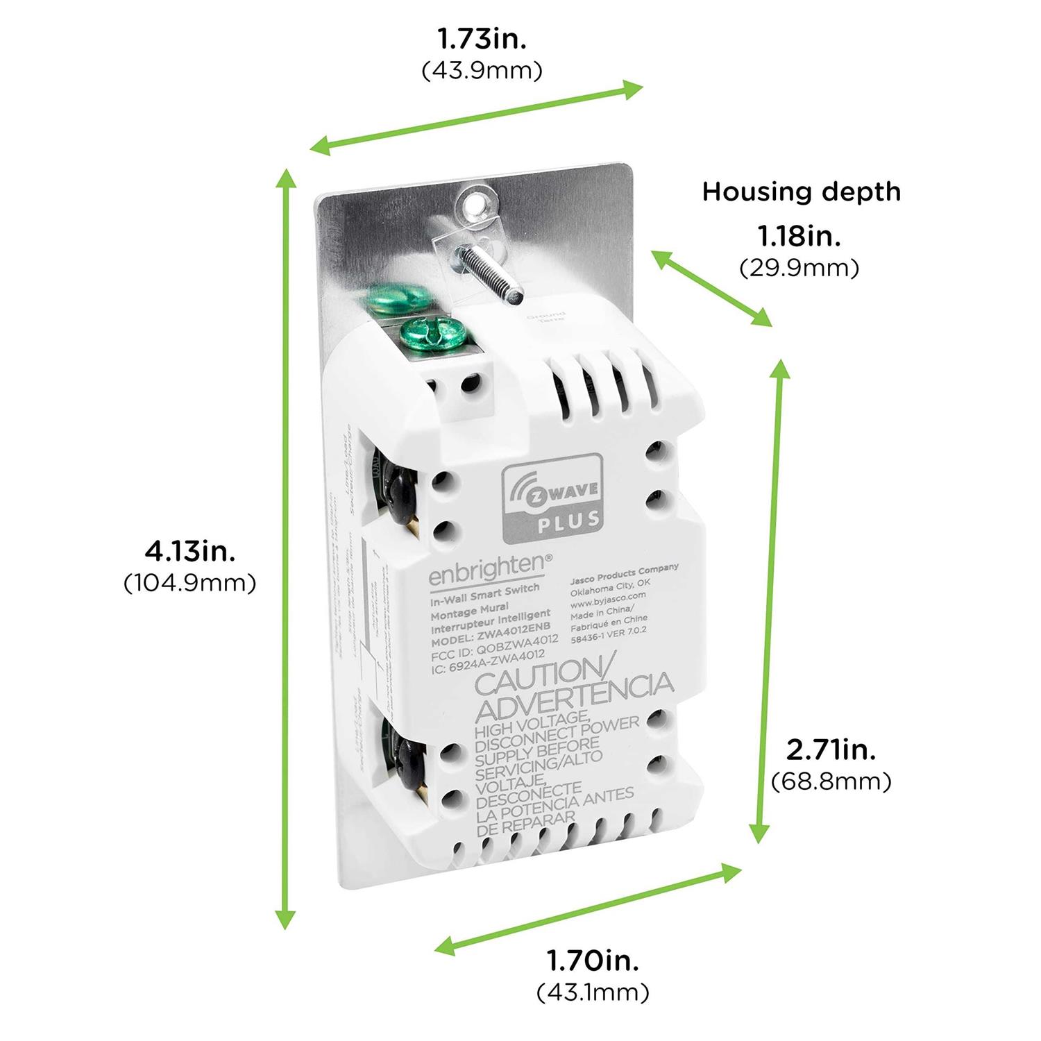 Revolutionary design – QuickFit and SimpleWire technologies offer groundbreaking home automation features. Unique advancements make the smart controls easier to install and more reliable than ever. QuickFit – Improved components reduced the housing depth by up to 20% compared to previous Z-Wave models and eliminated the need for heat tabs. QuickFit enhancements are the ideal smart solution for older-style switch boxes, multi-gang configurations or any other application with limited space. SimpleWire – Patented auto-detecting line/load terminals support fast installation by identifying line and load wires and configuring the switch accordingly. Dual ground ports, which are offset to avoid switch box mounting screws, support daisy-chaining in multi-switch setups. Voice control – Enjoy the convenience of voice control with Google Assistant or Amazon Alexa when connected through a compatible Z-Wave hub. Optional toggle guide light – The white, toggle-style switch illuminates to show switch location and status. Color-changing indicator allows customizing the switch by not limiting the LED to one color. The indicator can also be formatted in four ways, including a guide light in the dark, on when the switch is on, always on or always off.