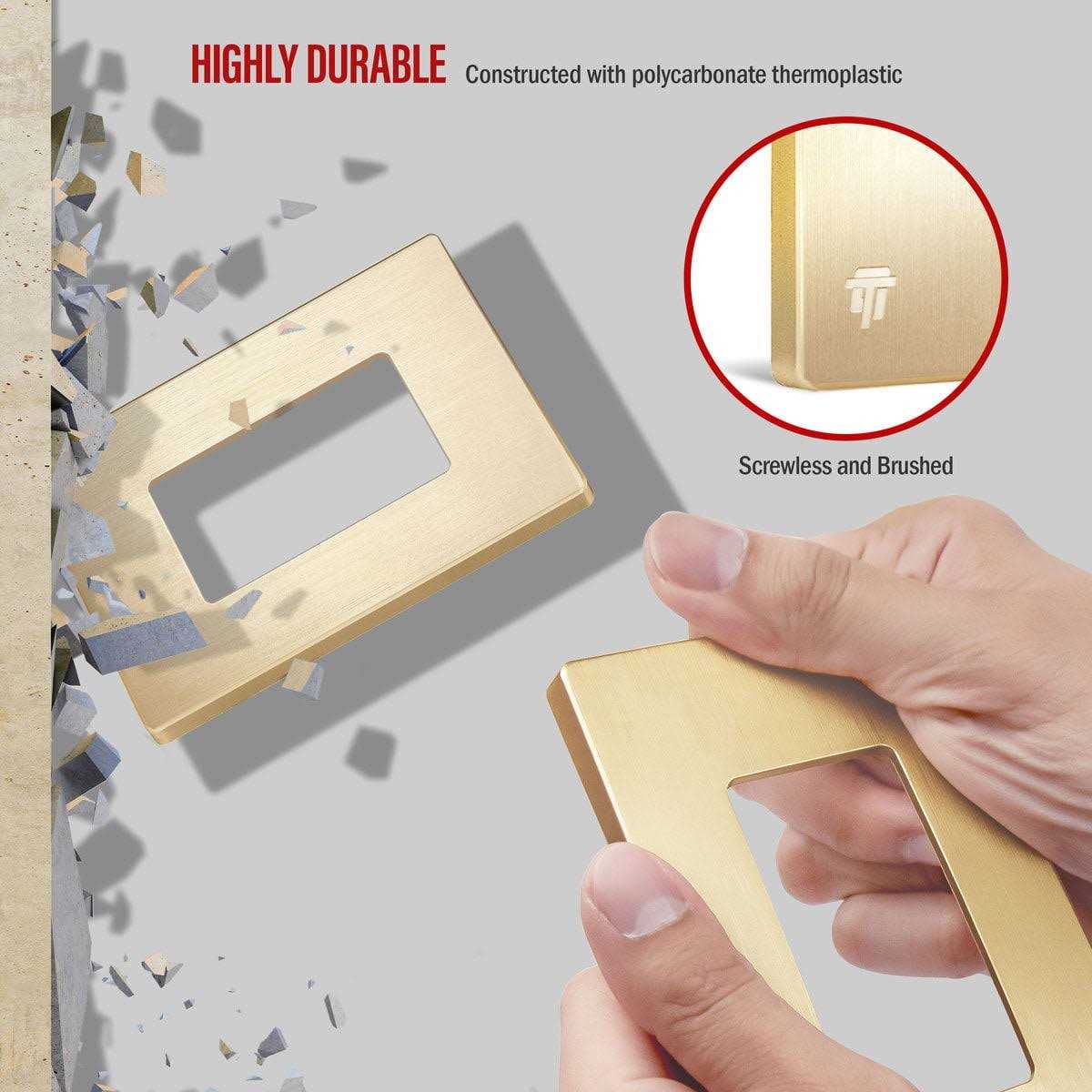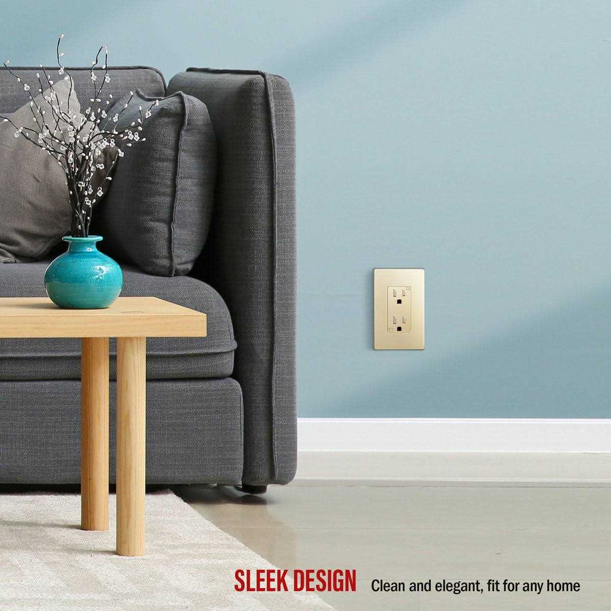 Enerlites SI8831-GD Elite Series decorative screwless cover, child safe wall plates are made to cover a 1-gang decorator receptacle or switch. These wall plates are made to enhance the look of any room. The low-profile design blends seamlessly without visible gaps between the wall plate and wall. Their smooth finish provides an attractive appearance and makes them easy to clean. Enerlites SI8831-GD Elite Series screwless cover child safe wall plates are UL listed.