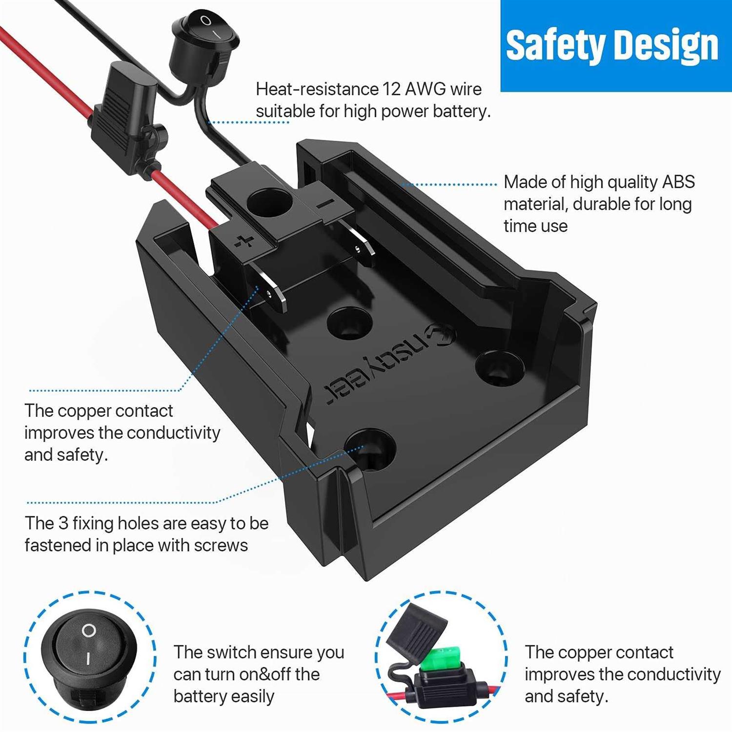 Ensayeer power wheel adapter with fuse & switch secure battery adapter for milwaukee 18v lithium battery