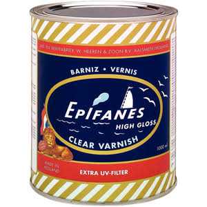 This traditional marine varnish is based on tung oil, phenolic-modified alkyd resins and maximum U.V. absorbers. It has outstanding protection for all marine and household woods and can be applied to interior and exterior woods above the waterline. It offers superior flow and durability. In addition, it has excellent flexibility and water resistance in all climate conditions. Application: Brush, Roll or SprayDry time at 18 °C: Dry in 12 hours, re-coatable in 24 hours Epifanes Clear Varnish, known around the world, is considered the ultimate in high gloss finish. This traditional marine varnish is based on tung oil, phenolic-modified alkyd resins and maximum U.V. absorbers. It has outstanding protection for all marine and household woods and can be applied to Interior and exterior woods above the waterline. It offers superior flow and durability. In addition, it has excellent flexibility and water resistance in all climate conditions. Ask anyone who has ever used Epifanes High Gloss Clear Varnish and you will learn why it is considered to be the world’s best spar varnish.