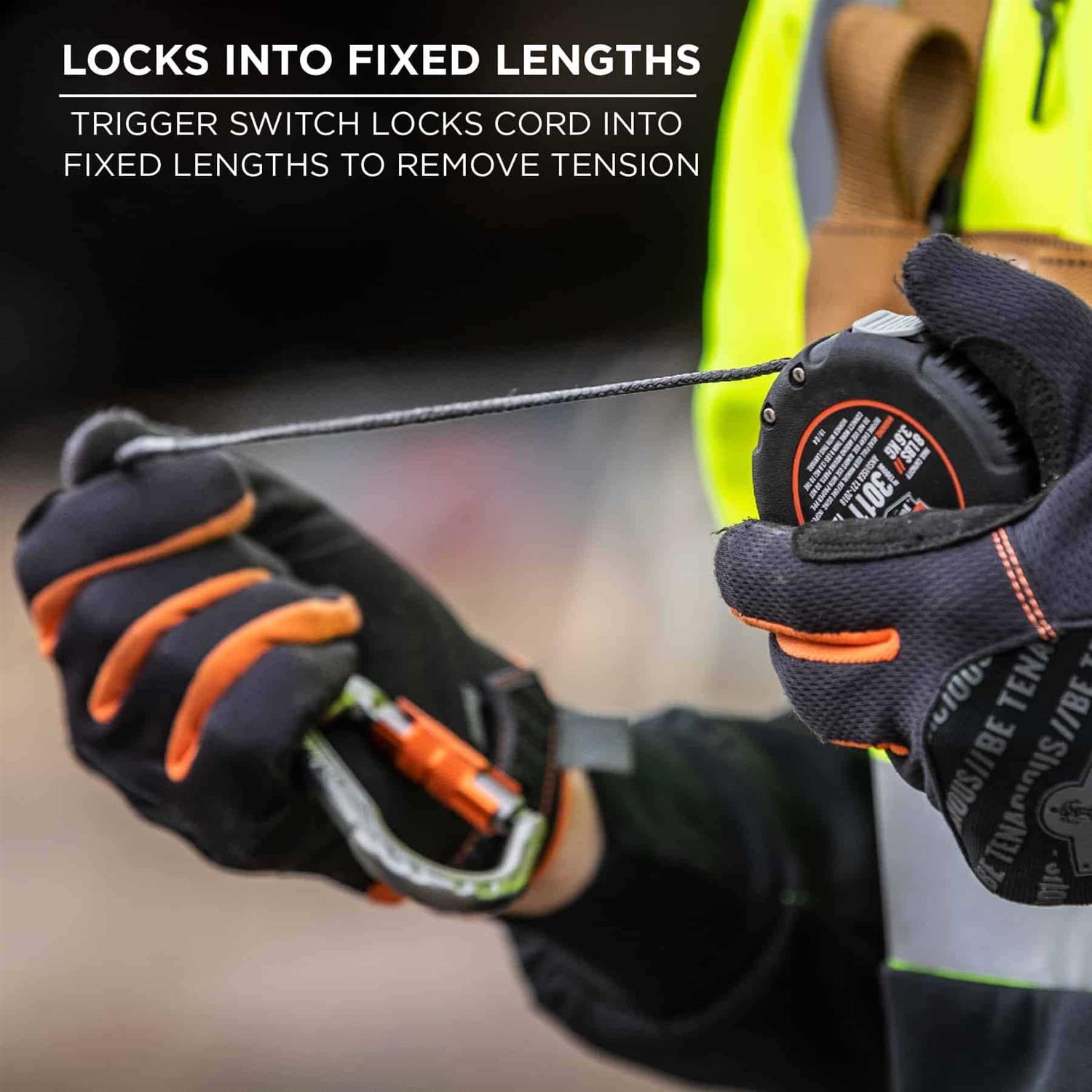 - LOCKS IN FIXED LENGTHS – Trigger switch locks cord in fixed lengths to remove tension