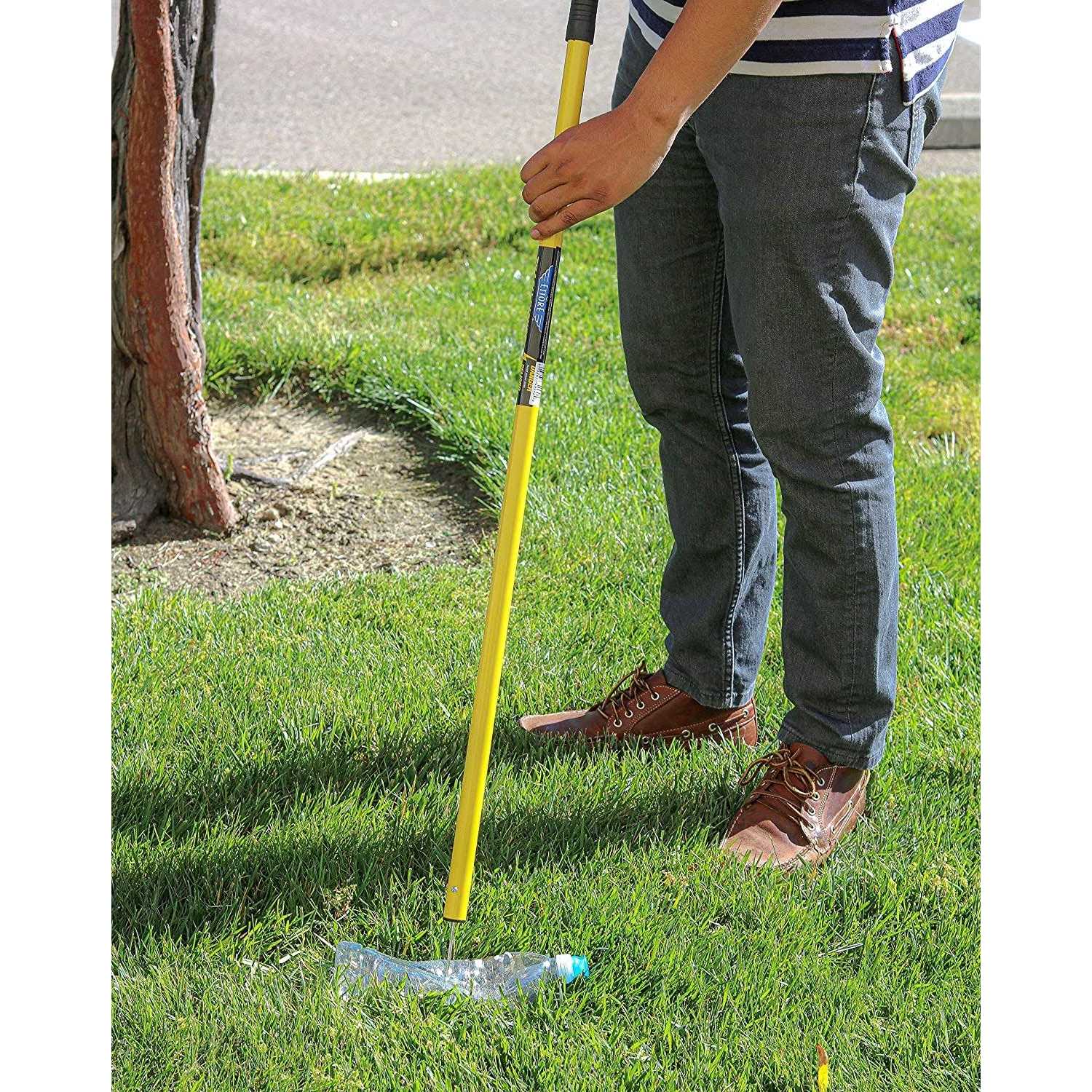Trash Picker is a simple, effective tool to pick up multiple trash items at once without bending and stretching. Designed for numerous debris, the 4″ long, sharp stainless steel tip spears, paper, trash, metal cans, plastic bottles and more and includes a safety guard. Trash Picker is easy to use. Lightweight design allows easy maneuverability and reduces fatigue during prolonged use. Ergonomic handle includes a built-in hanging hole for convenient storage.