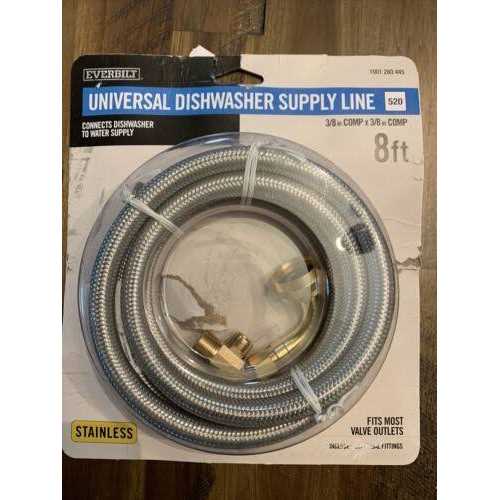 The Everbilt Universal Dishwasher Installation Kit comes with all the necessary components to connect your new dishwasher to the water supply. The braided stainless-steel exterior is designed to prevent kinking and crimping and resist corrosion. It consists of white flexible PVC Tubing jacketed with braided Stainless-steel wire, permanently attached brass compression end fittings and additional elbows.