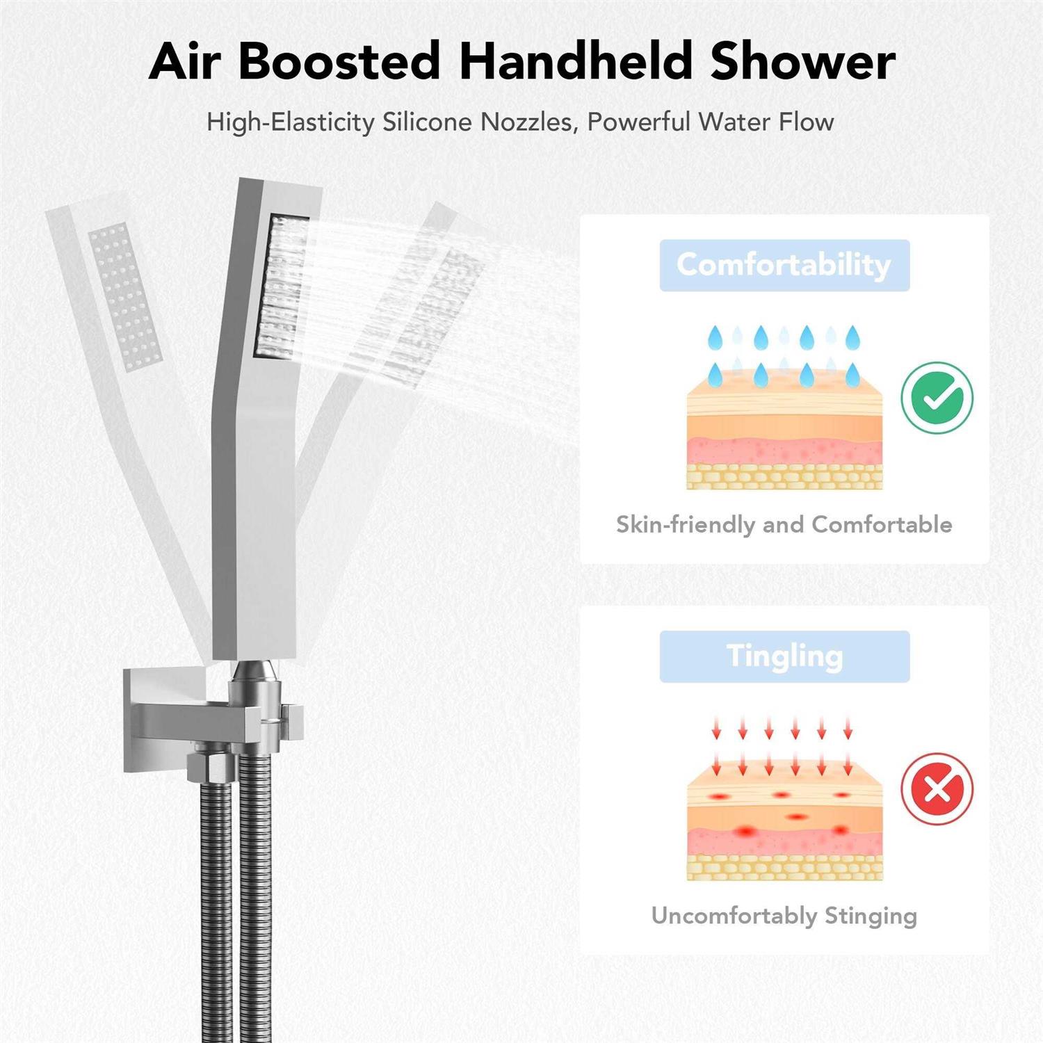 The 4-Function Luxury Black 12 in. Dual Shower Head Set combines high-quality materials, versatile functions and a stylish matte black finish. With 2 stainless steel handheld shower heads, a sturdy copper main body and a shower head bracket, this set is designed for durability and ease of use. The shower heads offer various spray patterns, including rainfall, massage, combination and hand-held sprays, allowing you to customize your shower experience. The stainless steel bar ensures secure mounting and adjustment, while the easy installation process makes it convenient for any user. Elevate your bathroom’s style and enjoy a luxurious showering experience with this durable and functional shower head set.