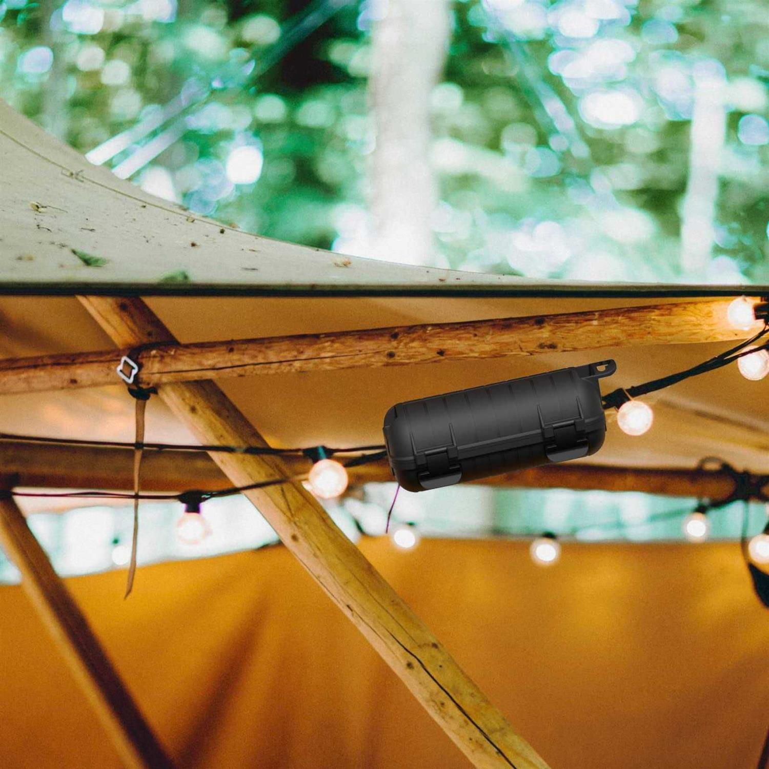 High Quality Material: The extension cord cover is made of heavy duty weather-resistant plastic with large compartment, firm and tight rubber seals at wire entrances and exits to prevent water entry for greater safety. The 4 square sponges on each end may stick together and need to be pulled apart and seated separately in the four holders. IP54 Water Resistant Wire Cover: Perfect to seal 14/16/18 gauge cord, braided cable and flat wire. Every wire cover has 4 removable buckles lock and 2 extra replaceable buckles. The removable latch is not easy to crack, and the two spare latches make you don’t have to worry about the latch broken causes the waterproof extension cord connector to fail to close tightly. Easy to Use: A practical and effective watertight cord lock. Simply close the lid after connecting the extension cord plug and then close the latches to create a watertight seal. The use of waterproof cord safety boxes can prevent accidental disconnection or weather effects. Versatile: Suitable for both indoor and outdoor use, it can be used to protect outdoor applications, patio bistro string lights, garden power tools, Christmas holiday lighting, pool pumps, landscape decorations, fountains, camping tent lighting, farm, inflatables, ventilators, workshops jobsites yard tools, exhibits, fans, AS’s, corded power tools, construction sites, household appliances, audio and visual, lawn equipment, security cameras and more. Portable Size: The electrical connection box is light and compact in size, the cover has a length of 6.06 inches and a diameter of 2.52 inches, weighs only 0.4lbs, easy to take out and put in your bag. Hanger design allows the wire connector protector to be easily hung on a wall or tree. waterproof cover Extension cord outlet outside protector cover for Halloween Christmas Festivals Holidays Outside Outdoor Decorative Lights