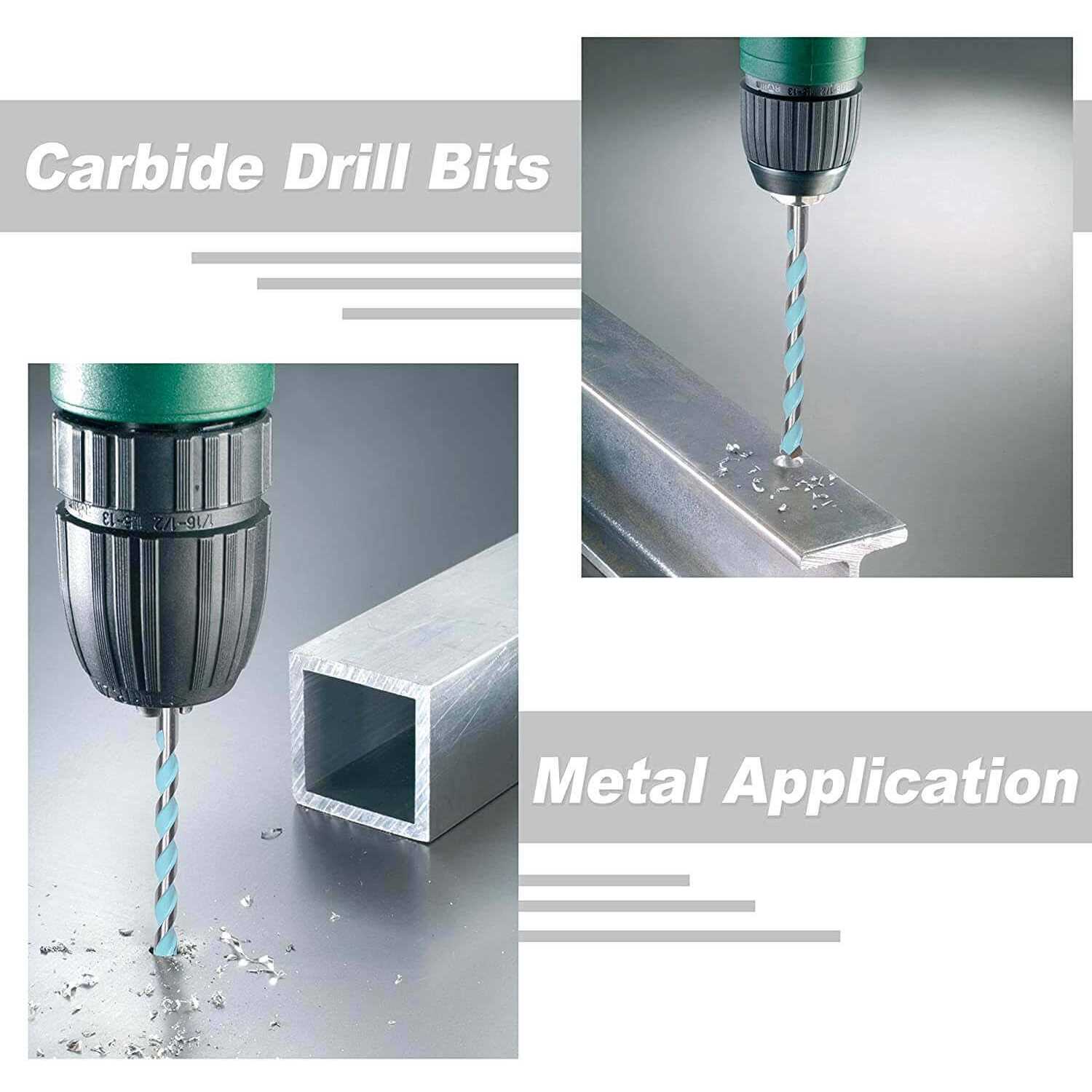 EZARC 5Pc Carbide Drill Bit Set, Multi-Purpose Hex Shank Drill Bit for Metal, Masonry, Wood, Block, Brick and Plastic
