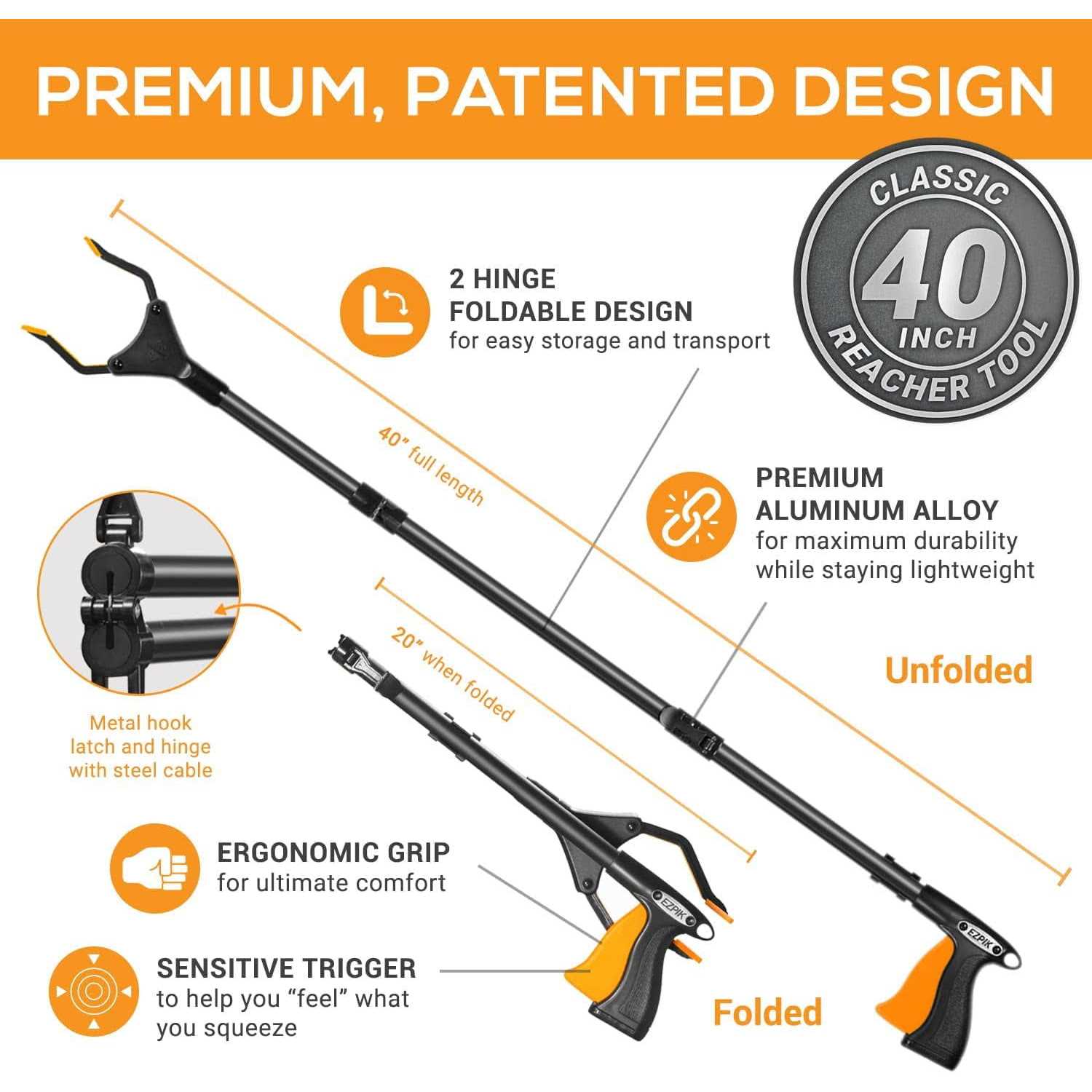 EZPIK 40″ Long Reach Grabber Reacher Tool – Heavy Duty Trash Picker Upper Grabber – Long Handled Reacher Grabber Pickup Tool – Extended Grabber Tool
