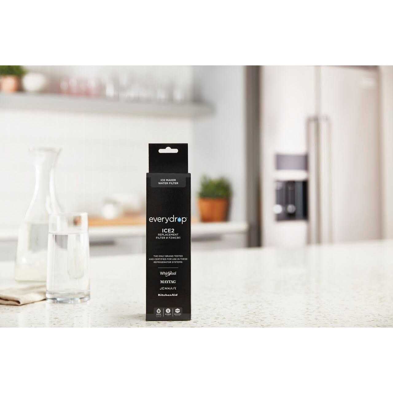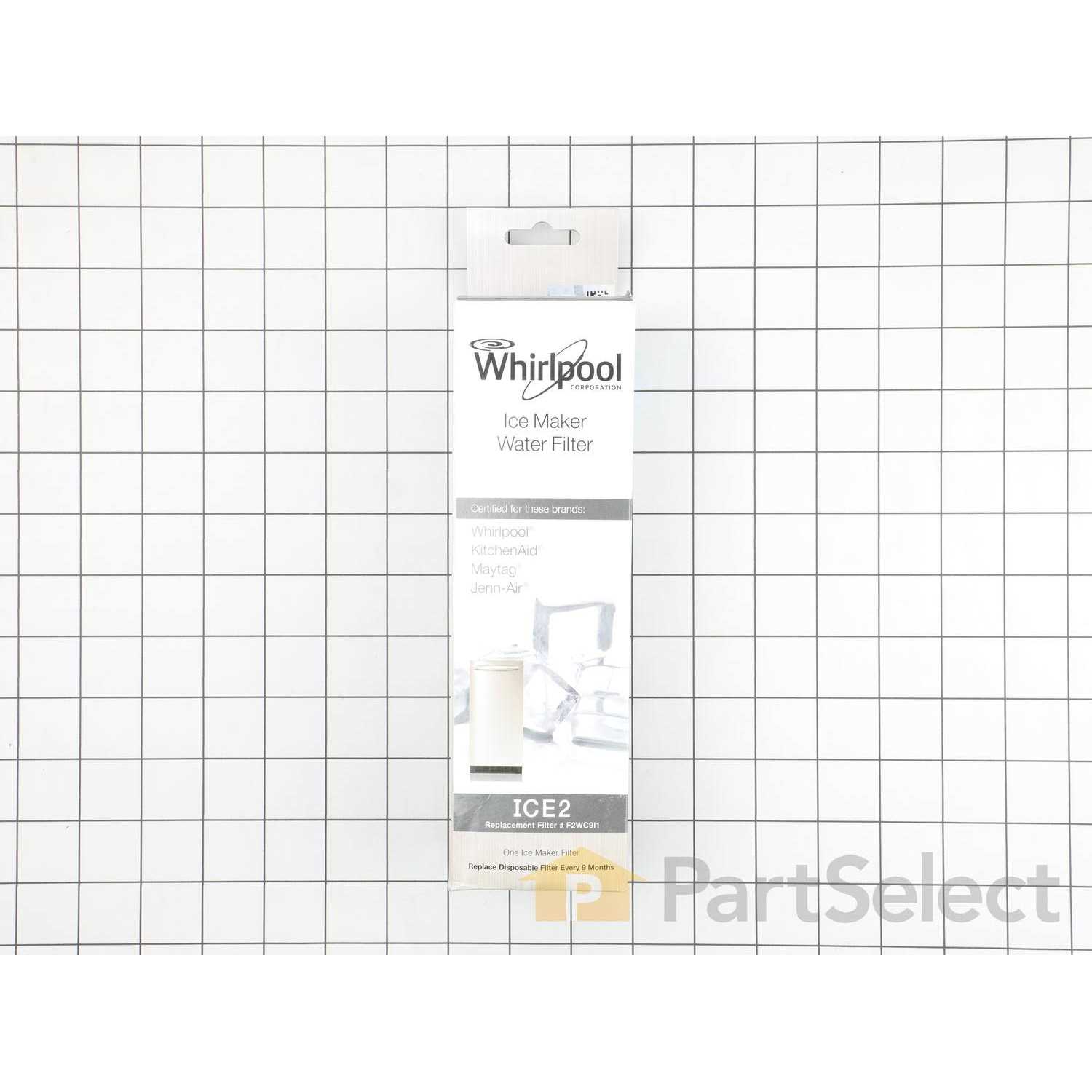 Replace your water filter in your ice maker with this ICE2 filter from Whirlpool. Certified for use in Whirlpool, KitchenAid, Maytag and Jenn-Air ice makers where the filter compartment is in the upper right corner. Long-lasting capacity of 2000 gallons, this water filter helps reduce chlorine taste and odor, along with scale buildup.