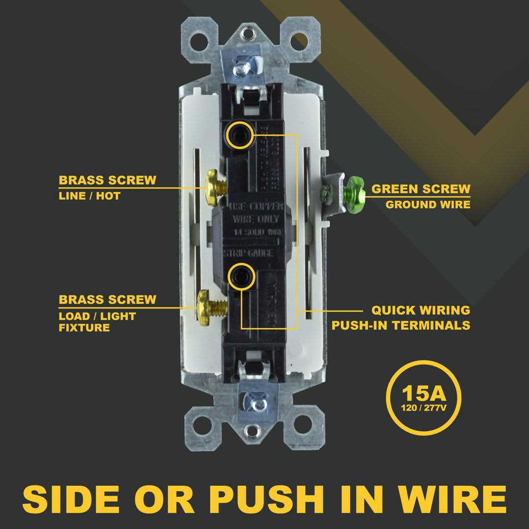 - Quick push-in and side wiring options available. Terminal screws accept up to 12AWG and quick push-in wiring accept 14AWG solid copper wire only
