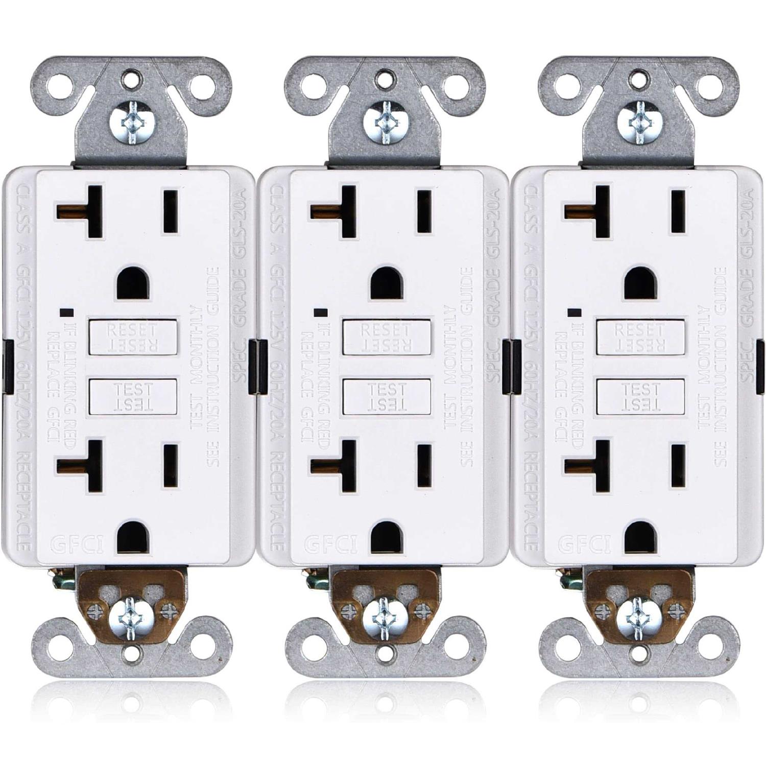 Faith GFCI Outlet 20 Amp [3-Pack], Non-Tamper-Resistant GFI Duplex Receptacles with LED Indicator, Self-Test Ground Fault Circuit Inte 20A