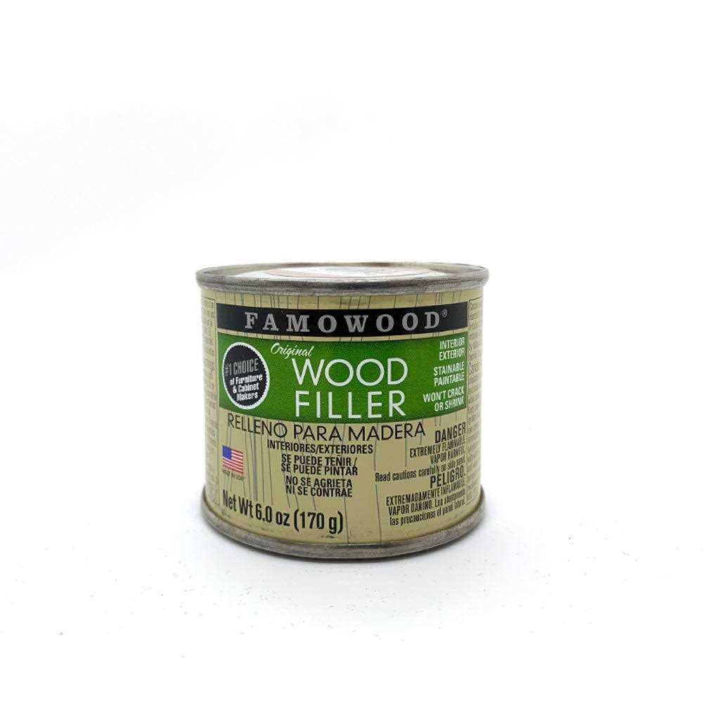 This No. 1 professional wood filler fills holes and cracks quickly, dries rapidly with no noticeable shrinkage, cracking, or crumbling. Can be used indoors or outdoors. The use of wood flour allows Famowood to be stained, painted, sawed, drilled, sanded, planed, and nailed like real wood. Customer can also rely on smooth spreading and even filling of any hole or crack. Used in furniture factories, cabinet shops, window and door factories, and by those desiring a fine finish to any wood project.