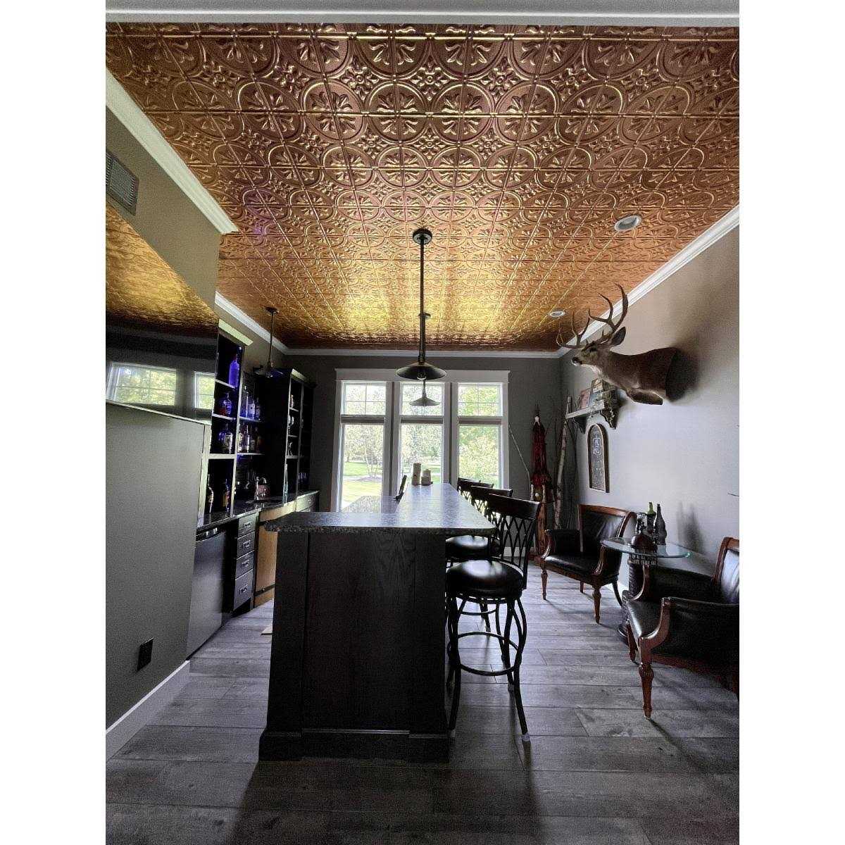 Fasade Glue-up decorative thermoplastic ceiling panels provides the classic look of Traditional tin ceilings for a fraction of the cost. Whether you are remodeling an entire room or simply accenting a small area, these ceiling panels create an instant designer look. Unlike Traditional tin panels that require decades to acquire an antique look, these ceiling panels have that turn of the century authenticity right out of the box. Fire Rating – Class A.