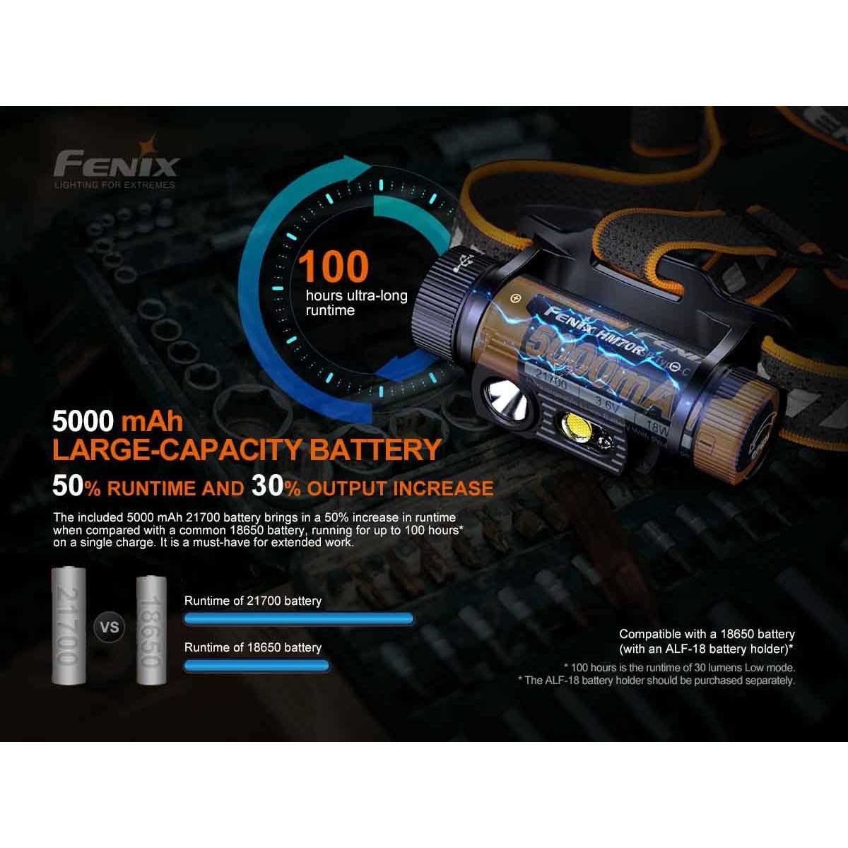 The Fenix HM70R Rechargeable Headlamp features a high-capacity 21700 battery, that not only boosts this headlamp to a maximum 1600 lumens, but also allows for a 100 continuous hour runtime when using 30 lumens on Low. Press and hold the large, glove-friendly switch to change over to the Functional mode to access two levels of neutral white light, a red reading light, and a red flash. The hidden USBC port adds to its IP68 dustproof/waterproof rating and allows you to quickly charge your headlamp with a 2A charging current. Battery level indicator, intelligent memory, and lock out function, round out the features of the Fenix HM70R Rechargeable Headlamp.