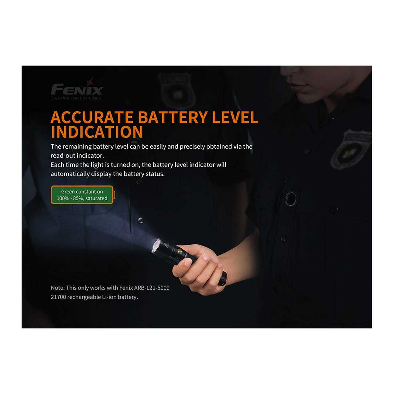 - Uses 1 x FENIX arb-l21-5000 battery (Included)
