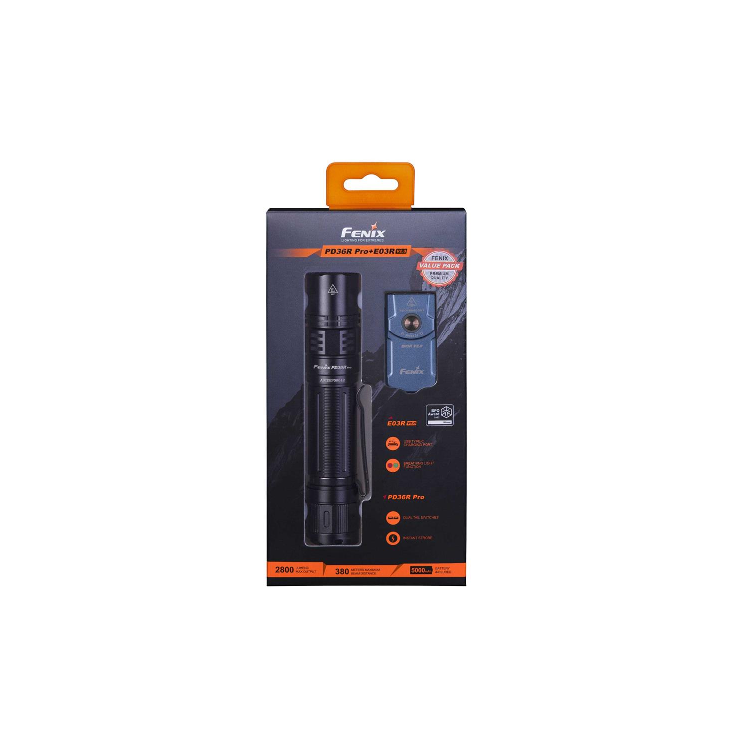 Just in time for the holidays is our PD36R PRO Flashlight Gift Set which includes two lights in one package. Each set includes our bestselling PD36R PRO in black and our most popular keychain flashlight, the E03R V2.0 in your choice of gray or blue. The PD36R PRO Flashlight features a maximum 2800 lumen turbo mode, dual tail switches control, and six lighting modes. The E03R V2.0 Keychain Flashlight is extremely small, but still can throw an incredible 500 lumens—a lot for a light this small. Plus it as other features like a red light and pulse light. Both are come with batteries and are USB Type-C rechargeable. Purchase the perfect gift set with our top flashlights now before they are gone!