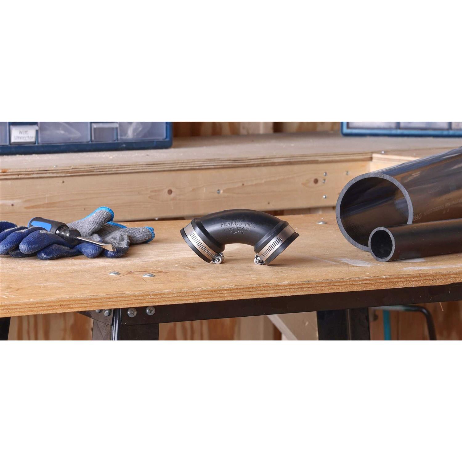 Fernco flexible Qwik tees and elbows allow up to 90 deg connections of all common household drain, waste and vent pipes quickly and easily without using special tools or fittings. Because they’re exceptionally flexible and long, they’re the ideal replacement for fittings at the joint during alteration or repair. Reducing sizes are made with separately supplied Qwik Bushings. Creates tee and 90 deg. Creates tee and 90 deg. Length allows cut-out fittings. Flexibility results in easy installations. Reducing is possible with insert Qwik Bushing. Leak-proof, rotproof and resistant to chemicals, ultraviolet rays, fungus growth and normal sewer gases.
