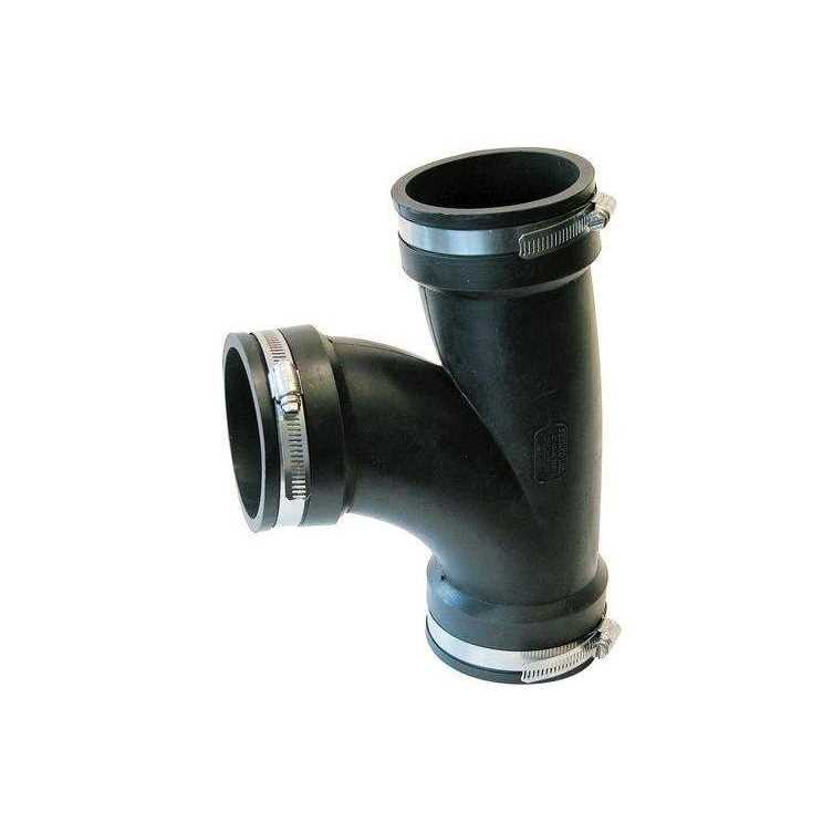 QWIK TEE 1.5IN Qwik Tee’s and Ell’s allow up to 90 deg connections of all common household drain waste and vent pipes quickly and easily without using special tools or fittings. Because they’re exceptionally flexible and long they’re the ideal replacement for fittings at the joint during alteration or repair. Fits cast iron plastic copper steel or lead pipe. Not recommended for underground connections. Do not use in pressure applications. Adapts to other pipe sizes with qwik bushings.