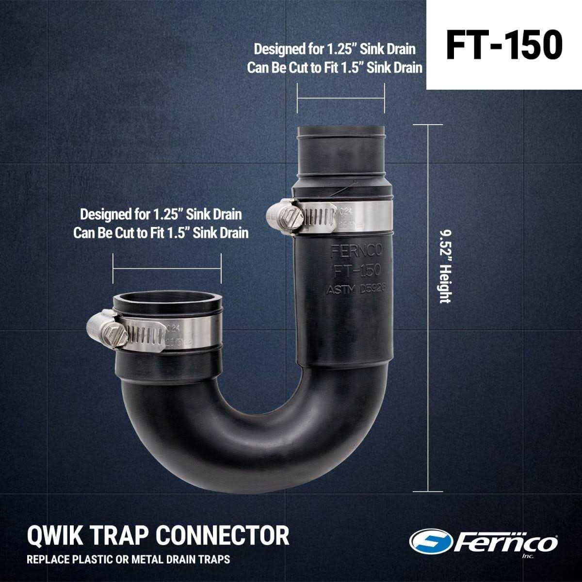 Fernco’s flexible PlumbQwik traps are used by professionals nationwide. These high quality traps provide a long lasting, leak free connection that resists freeze damage. There’s no faster, easier way to replace plastic or metal drain traps. Its flexible polyvinyl chloride material adjusts to pipe misalignment. It installs quickly and securely with a common screwdriver or nut driver. Installations are quick, clean and simple. The trap squeezes to clean, with no drain tools or drain cleaners needed. Fernco’s flexible PlumbQwik traps have earned a reputation for consistent, superior performance, and you can have full confidence in their quality and reliability.