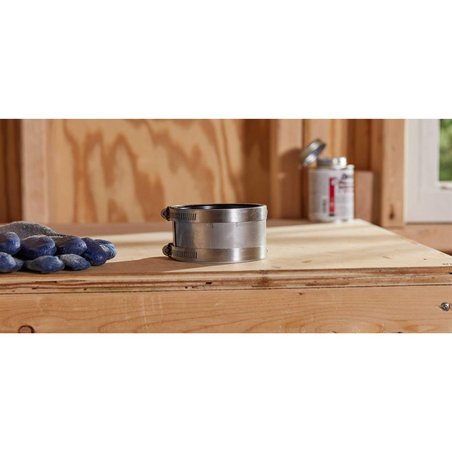 ProFlex couplings are wrapped in an extra wide sheath of Series 300 stainless steel for extra strength and rigidity, reducing the need for hangers, too. Designed for use both above and below ground, ProFlex couplings are ideal for all applications where shielded couplings are specified or when extra stability is desired. Fernco ProFlex shielded couplings have unique, one piece gaskets with removable bushings in all of their 3 inch and 4 inch fittings. This allows each coupling to connect to a wide range of pipe diameters. Removable Bushings (2000 Series).