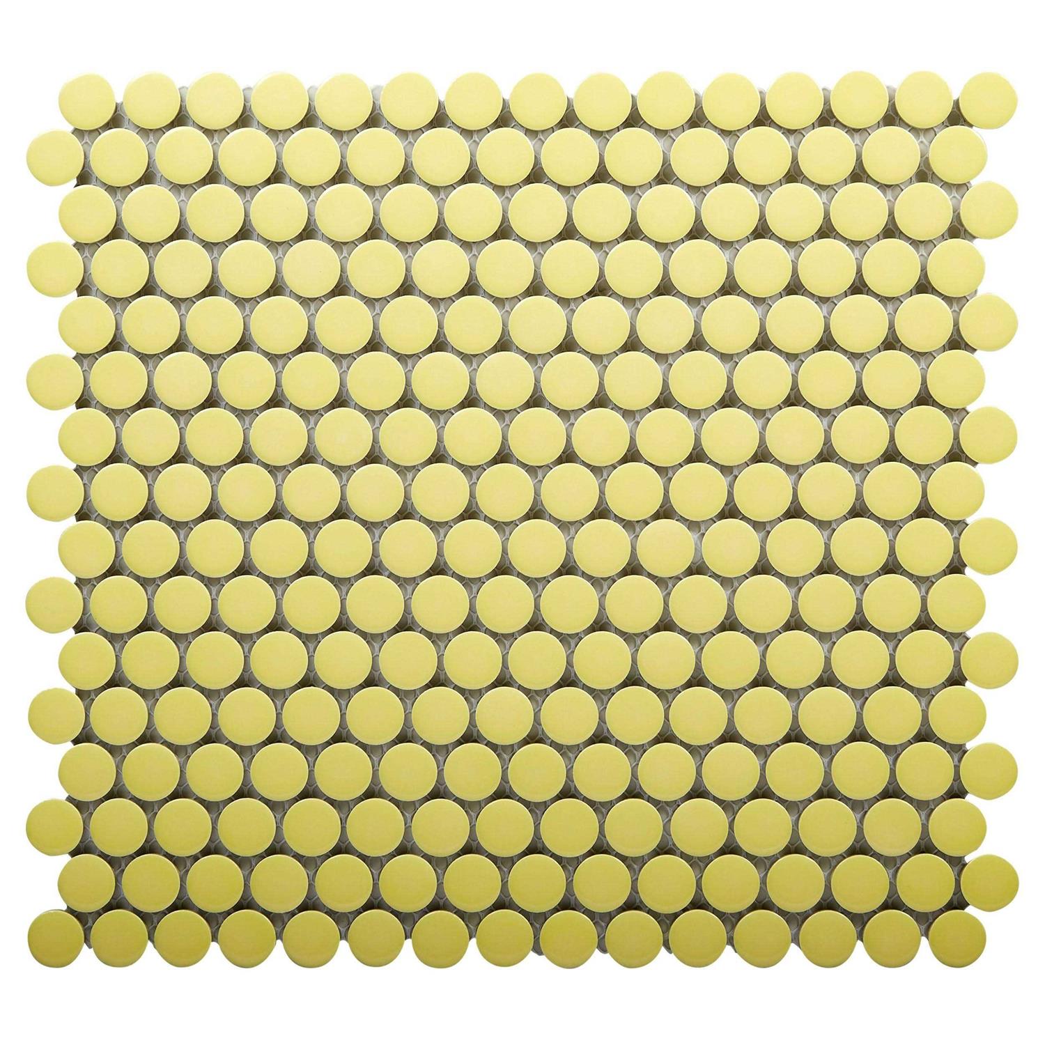 Festival | Sunflower II Porcelain Penny Mosaic, 12 x 12, Gold/Yellow, 1/4 inch Thick – Floor & Decor