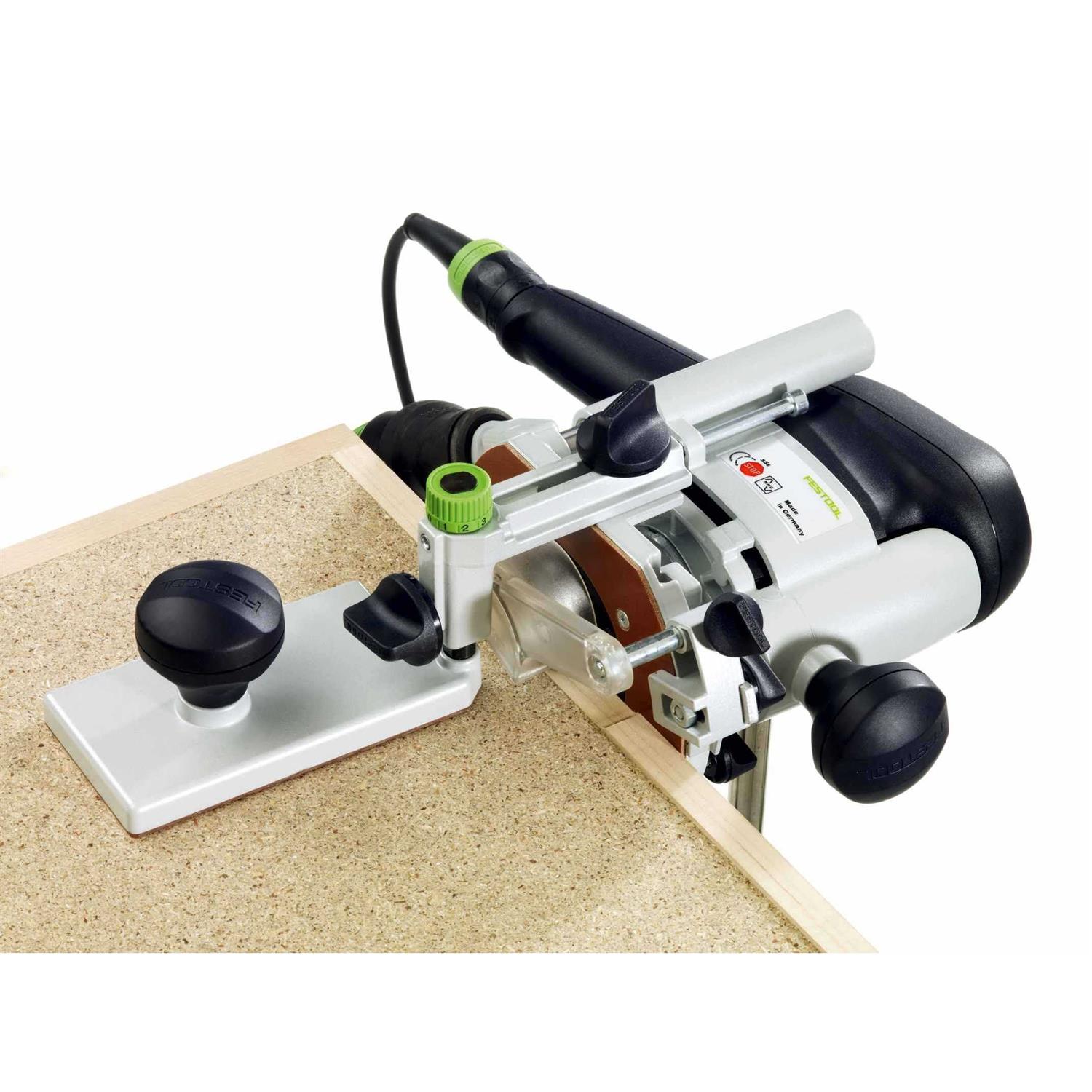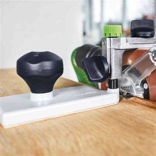 Reliable guiding of the router is possible due to the large bearing surface of the edging plate. In conjunction with the WA-OF angle arm, the routing depth can be exactly set. Specially suited to flush trimming of edges. Large support for better guidance Delicate adjusting in conjunction with the WA-OF angle arm angle arm WA-OF and edging plate UP-OF are needed for the flush trimming of projected edges.