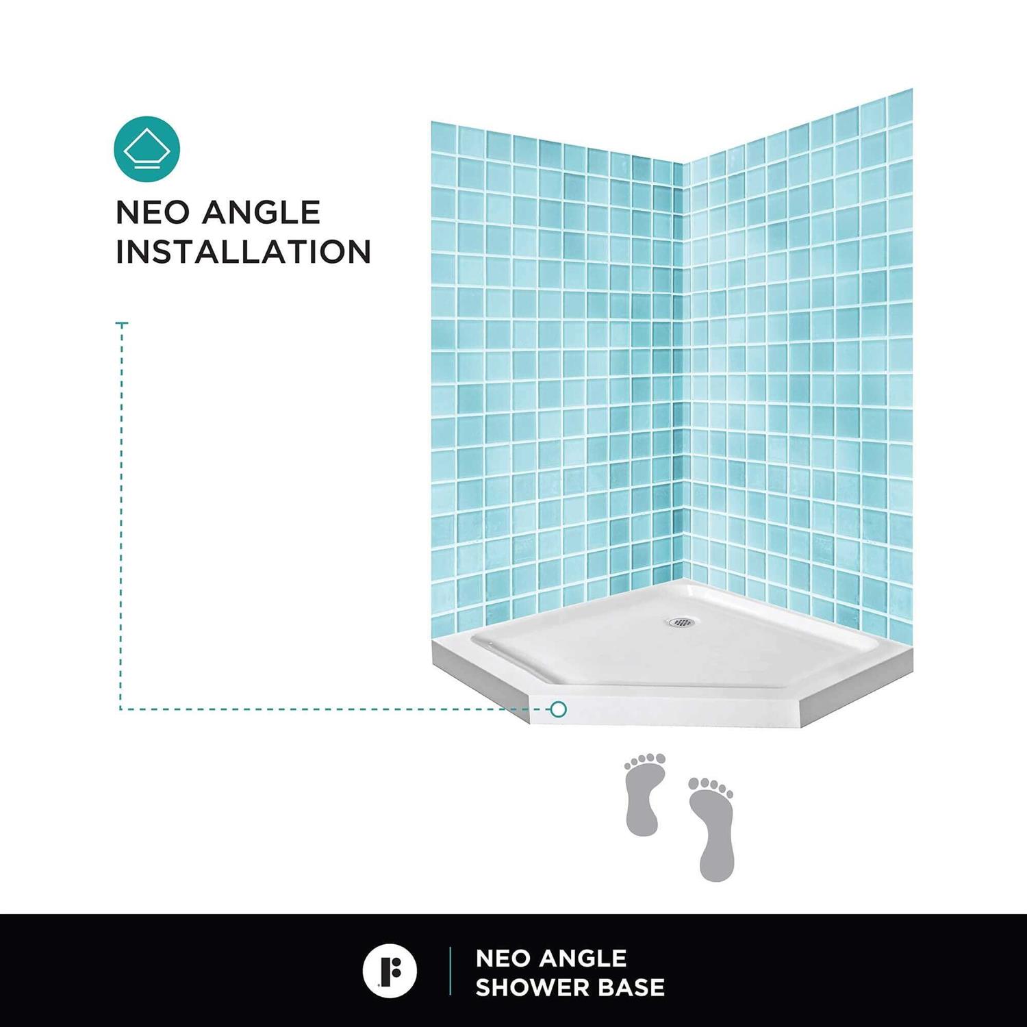 Fine Fixtures Neo Angle Corner Shower Base Shower Pan Floor in White – 36 x 36