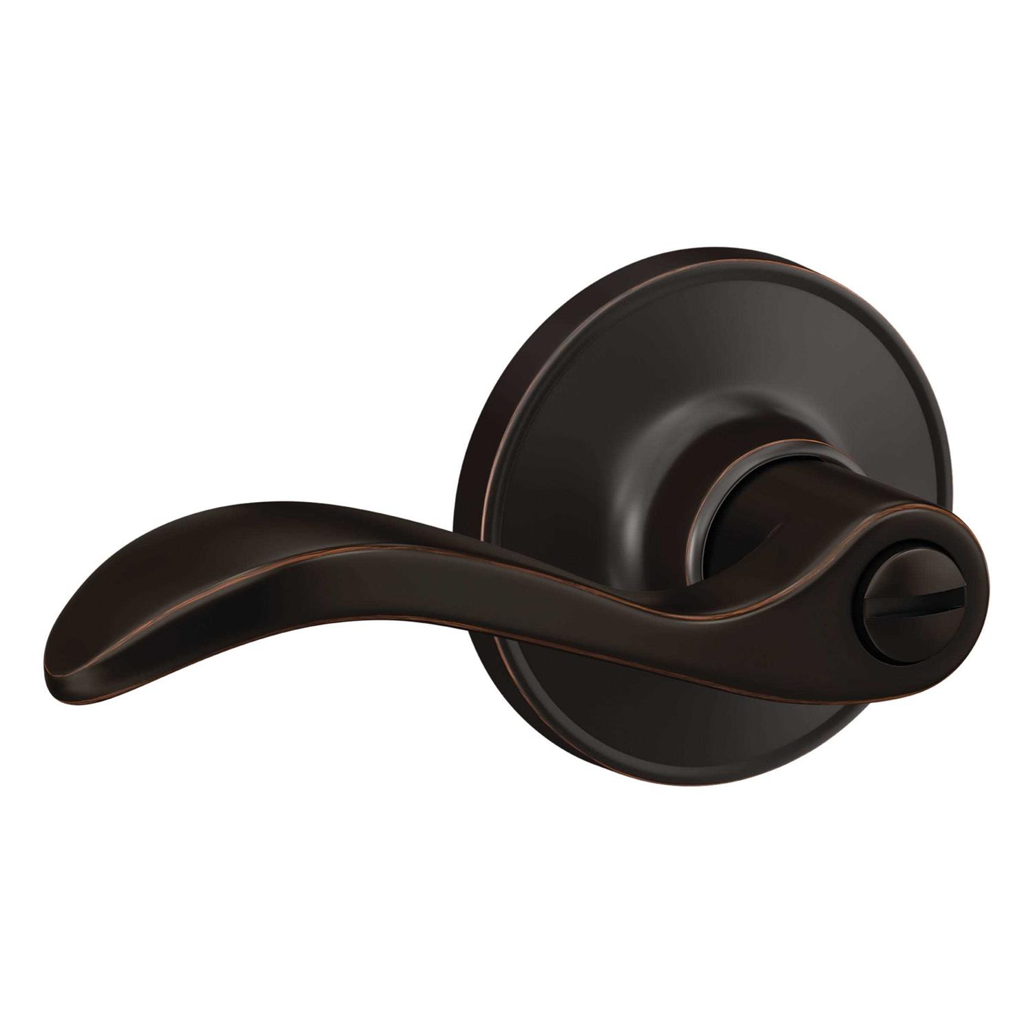 The First Secure by Schlage Presley Aged Bronze Bed/Bath Privacy Lever offers durability and convenience from a reputable name in door hardware at an exceptional value. It is ideal for bedroom and bathroom doors where privacy is needed. Plus, it is backed by our limited lifetime mechanical guarantee.