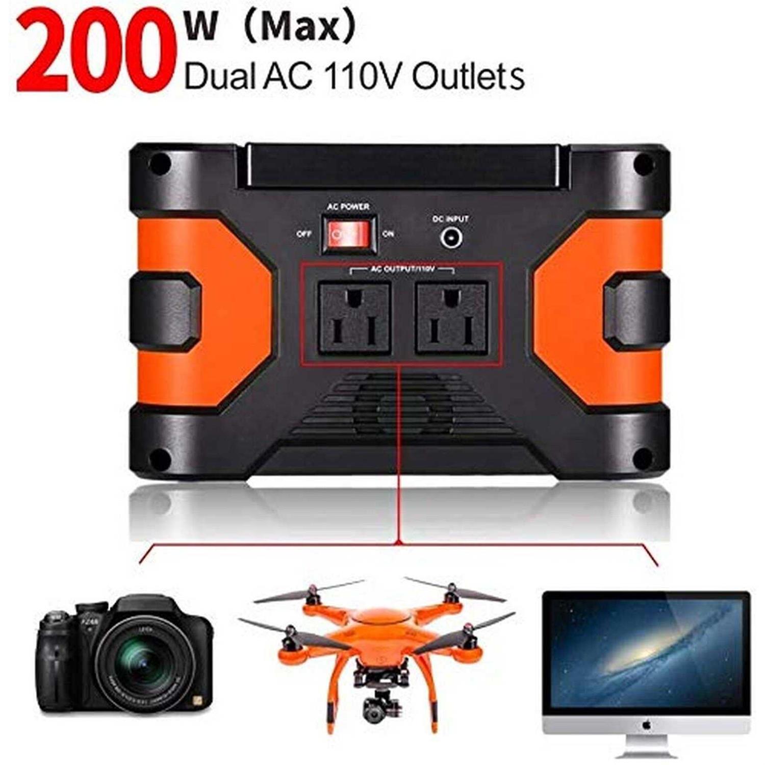 Brand: FF FLASHFISH Color: 166Wh Features: Wide Application: Our 166Wh portable generator is provided with three outputs: two 110V AC outlets charge CPAP machine/tablet/laptop/ camera/drone/ fan etc, three USB ports (2 of them are quick charge ports) help for smart phone/ ipad/GPS and any electronic devices, and two DC ports can be used for vehicle tools like car cleaning and type replacement; Suitable for travel camping, fishing, outdoor activities, medical care and any emergency situations. Specific Features: With 45000mAh capacity, pure sine wave, 150W AC continuous power and 200W AC peak power, this power supply pack is able to more stably charge a number of devices for many times; Compact and lightweight design (only 4.5lb) make it more convenient taken outside. 3 Ways to Recharge: There are 3 options for you to recharge the large-capacity power bank: the wall outlet, solar panel (not included in package) and 12V car socket. And their accessories like power adapter, cigarette lighter adapter and car charger are all included in the package.KINDLY NOTE THAT THE POWER STATION CAN NOT BE CHARGE AND USE AT THE SAME TIME. Safety Performance: This power station is provided with overheat protection, short-circuit protection, low-voltage protection, lock-on protection, over-voltage protection and over-current protection which prevent your devices from damaging and make you use it at ease. Portable Power Source: Simple to use, there is a power button on the middle to turn on the generator, so you won’t be pulling any ripcords to turn on it; it will allow you to camp and recharge power without running a noisy, super cool product for your outdoor camping and travel. Details: Parámetros: Capacidad: 166 Wh. Potencia máxima: 200 W. Potencia nominal: 150 W. Frecuencia: 50/60 Hz. Potencia estática (sin carga): Package Dimensions: 12.3 x 8.8 x 6.7 inches