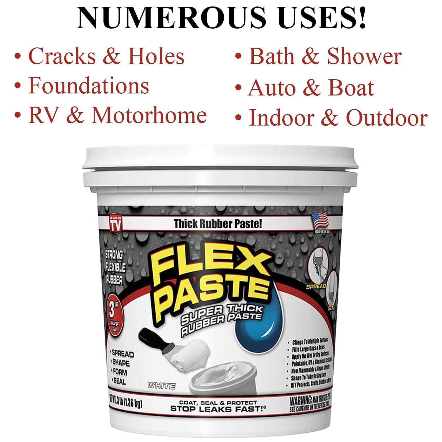- Receive 1, White Flex Paste (3lb) of rubberized paste that sticks to the surface and instantly fills large gaps, cracks, and holes around your home