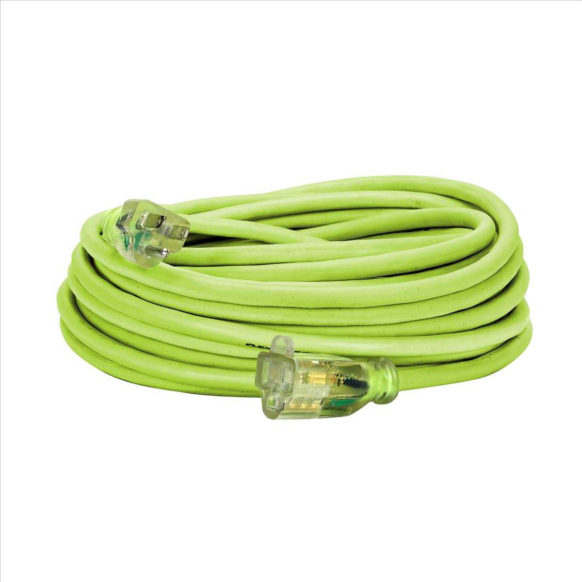 Descriptionfeatures & benefits: extreme all-weather flexibility (-58° to 167°f) resists kinks, coils easily lighted plug glow-in-the-dark stripe indoor and outdoor use the flexzilla pro extension cord is engineered to stay flexible in cold weather. It features a glow-in-the-dark stripe offering the operator the convenience they need when locating the cord in low light situations. Plus, the grounded plug includes a lighted power indicator. Flexzilla pro extension cords are ideal for indoor/outdoor industrial grade applications. Ul listed.