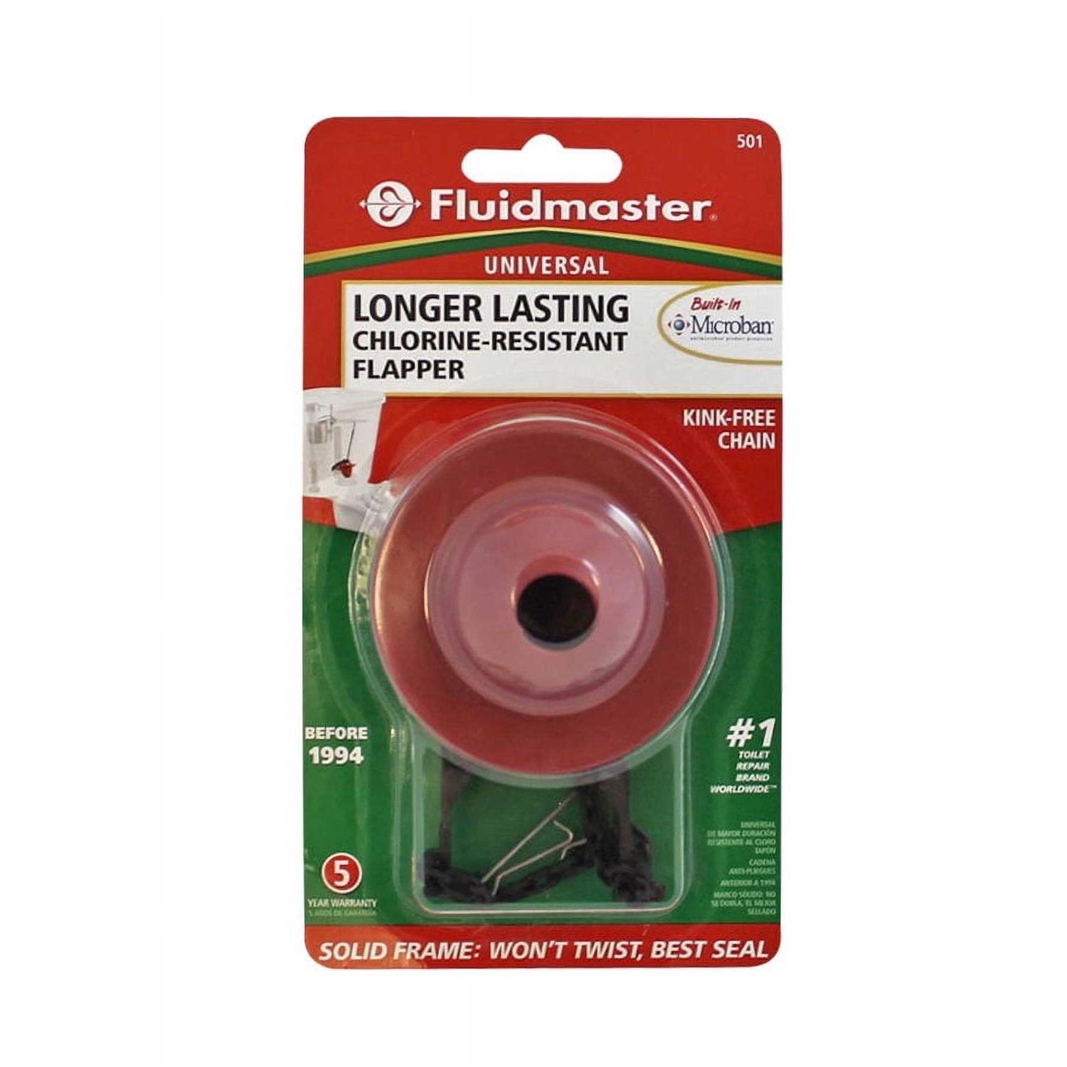 Make sure that your system is functioning properly with the Fluidmaster 501 Universal Solid Frame 2 inch Toilet Flapper. It is designed to be longer lasting and is resistant to chlorine. This Fluidmaster toilet flapper is made to fit most 2 inch flush valves and is best for older models of 3.5 GPF or more (before 1994). Plus, it is built tough to last in any water conditions, with built-in Microban. This universal toilet flapper is the only one with this protection, and it makes a suitable replacement part. Having this technology built into the construction of these units helps to fight breakdown and combats bacteria. The solid frame ensures a secure seal with each flush, and it comes with a chain that doesn’t kink. It is made for a trouble-free installation.