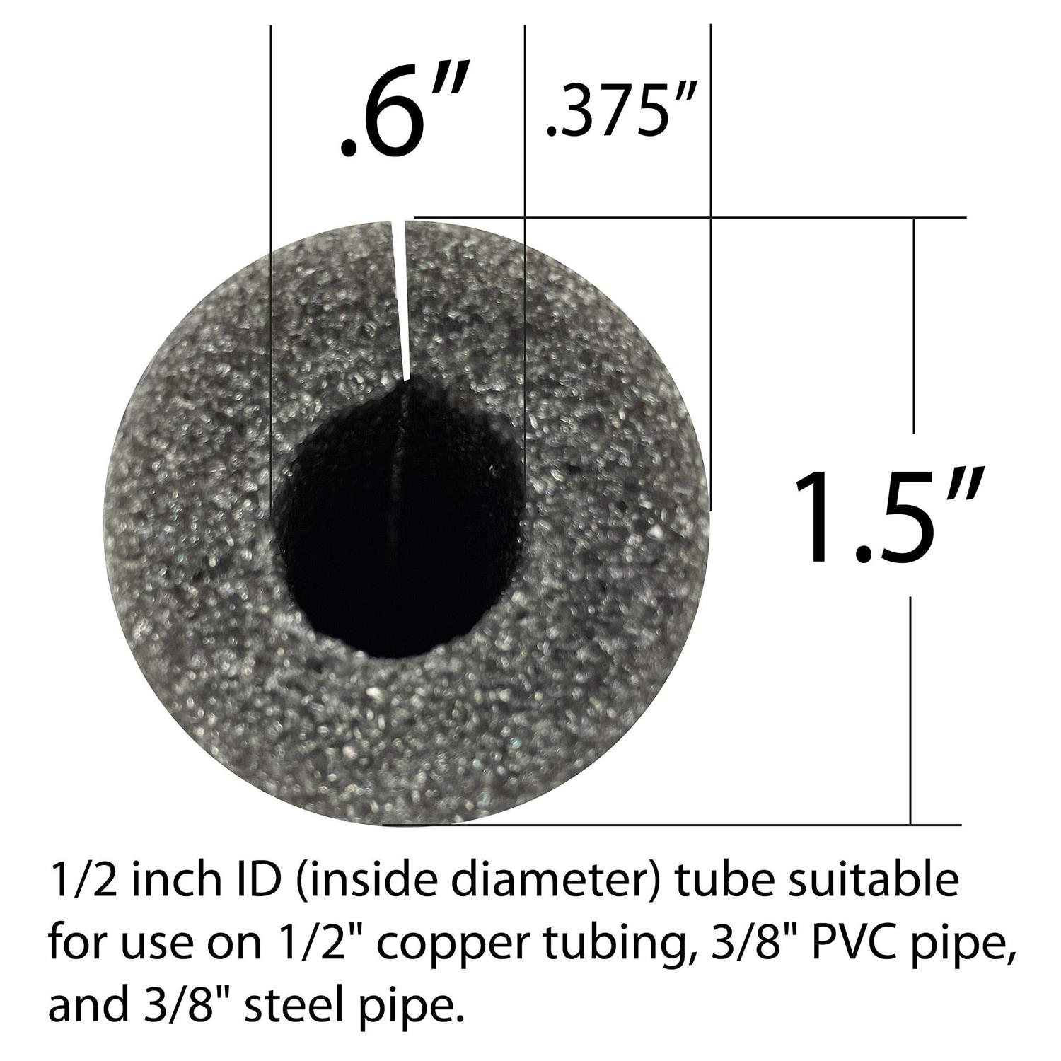 Stop wasting money on energy costs with Foam King Pipe Insulation. Foam King Pipe Insulation- Insulates hot and cold pipes: pre-slit for easy attachment to your pipes. These help to prevent winter freezing and summer sweating. Great for reducing plumbing noise and to reduce heat loss. ID (nominal) 5/8inch, wall thickness 3/8 inch, fits copper pipe size 1/2 inch, fits iron pipe size 3/8 inch, R-value = 2.2Safe for temperatures from -90F to 180F degrees (-68C to 82C). Flame Spread: Class A ASTM E84; CAN/ULC-S102.2-M88Smoke Classification: Class A ASTM E84. CAN/ULC-S102.2-M88
