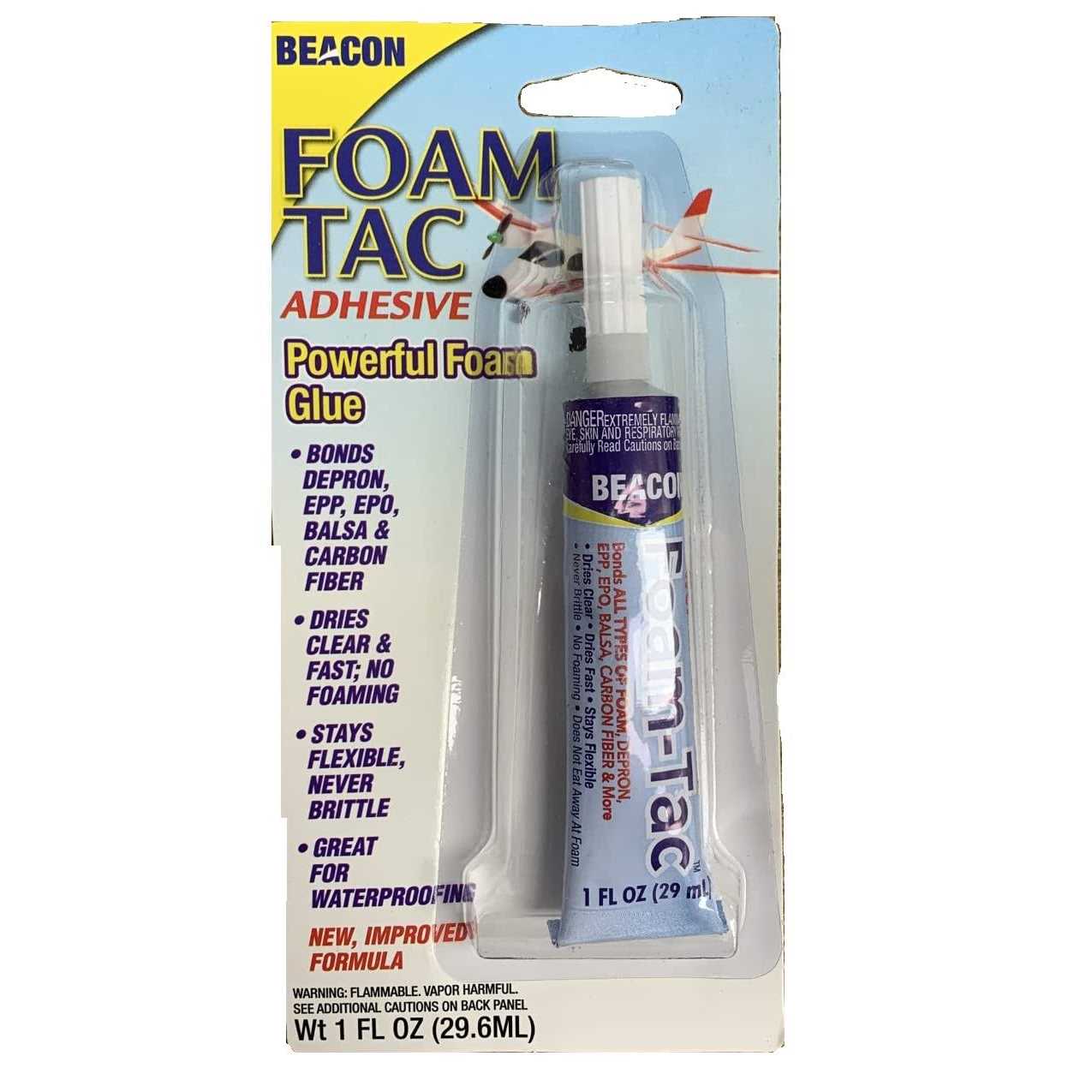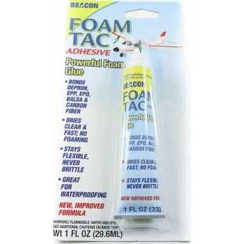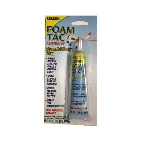 NewBeaconAdhesivesFoam-Tac33ml, 10x20x2cm, ClearbyBeaconAdhesives. This29.6mltubeofFoam-TacistheperfectsolutionforpermanentlybondingalltypesoffoamsincludingStyrofoam, extrudedfoam, EVA, EPP, epoanddepronaswellasbalsawood, carbonfibreandmanyothersurfaces.