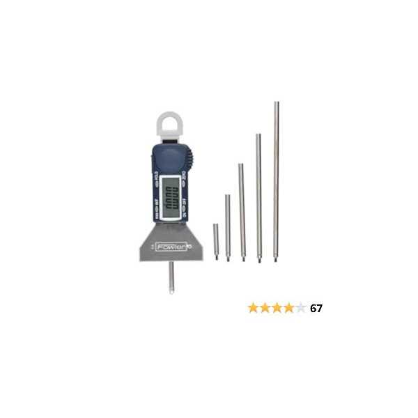 The gauge includes five measuring rods and has a spring-loaded measurement button with a hold function for ease of use and accurate measurements. Depth gauges are typically used in manufacturing, machining, and mechanical engineering. Depth gauges are precision measuring instruments used to determine the depth of a shape that has a step, groove, or slot. These gauges often take the form of sliders that travel on a measuring beam or rods, are moved to position by hand, and then adjusted with a calibrated screw. The base of the gauge rests at the top of the shape whose recession is to be measured, while the beam or rods extend to the bottom of therecessionto determine the measurement. Gauge position is read from a graduated scale, dial, counters, or an electronic display. Fowler, an American company, manufactures inspection and measurement instruments such as electronic indicators, calipers, bore gages, and digital scales. The company, founded in 1946, is headquartered in Newton, MA. What’s in the Box?