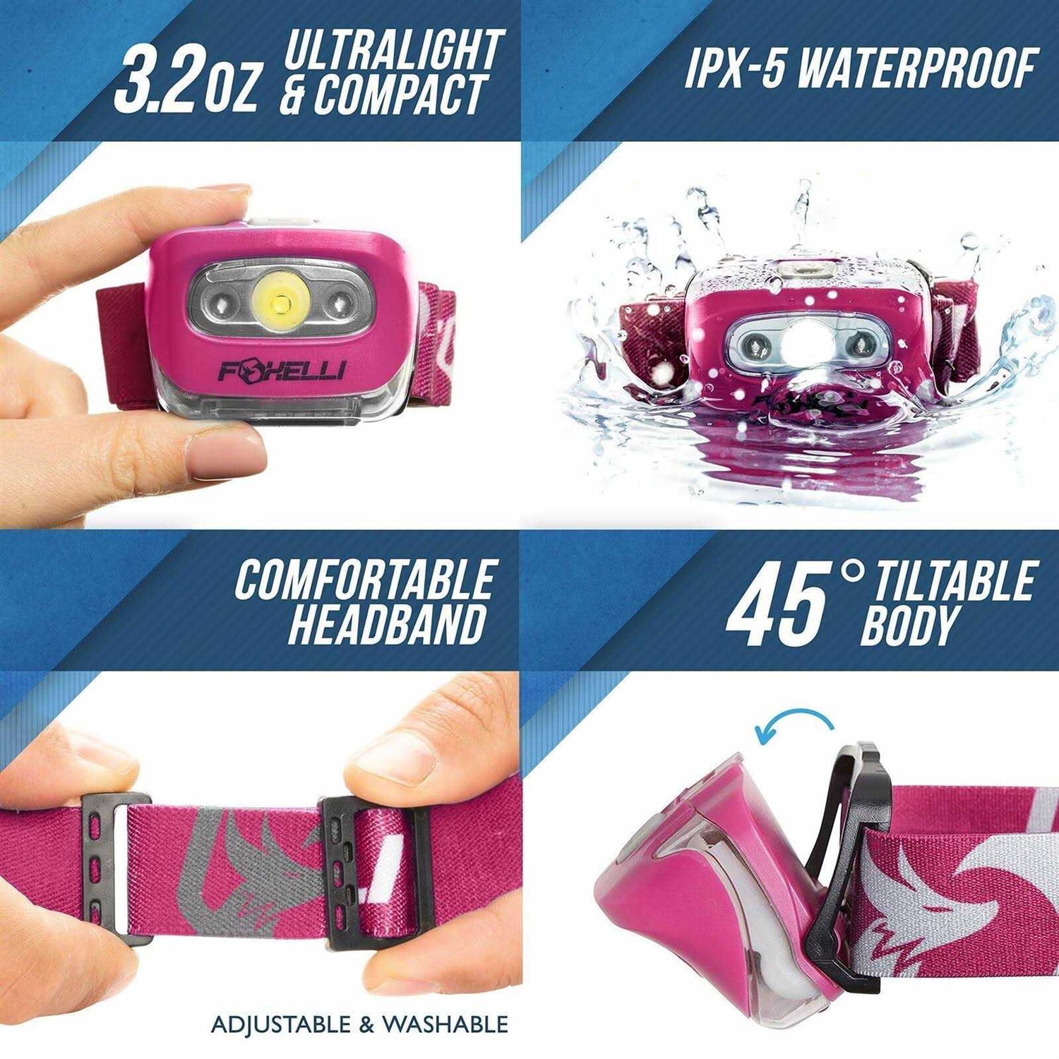 Foxelli LED Headlamp Flashlight for Adults & Kids Running Camping Hiking Head Lamp with White & Red Light Lightweight Waterproof Headlight Wit