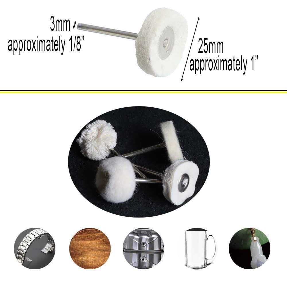FPPO 1inch Polishing Buffing Wheel Set,Wool Felt Cotton Mounted 3mm Shank for Rotary Tool Accessories,Mini Brush Polishing Kit for Watch and Jewelry