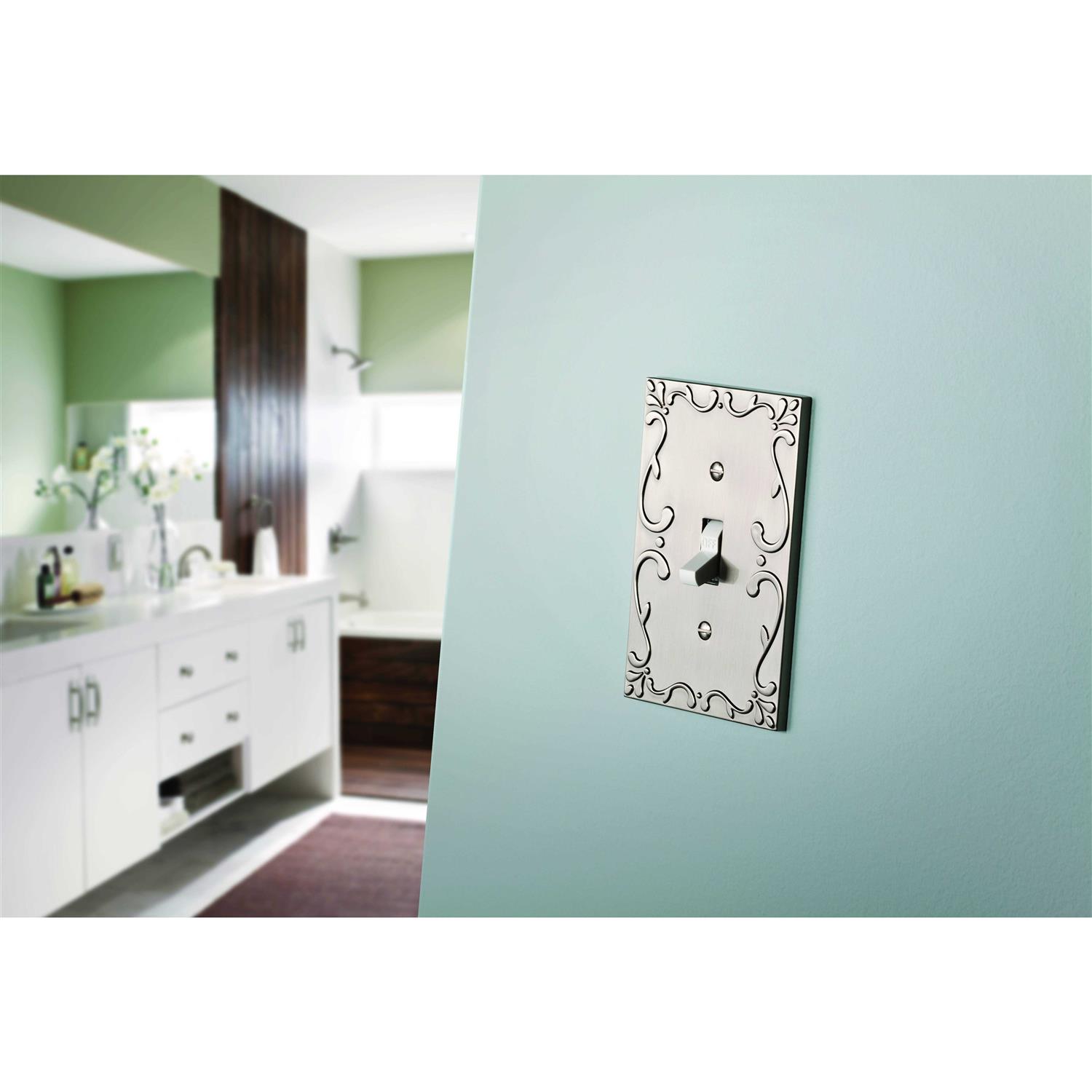 Inspired by intricate lace work popular in the Victorian era, the Classic Lace wall plate collection adds traditional detail to your home’s dcor. The satin nickel finish coordinates with the most popular finishes in homes today. Machine screws in a matching finish are included for easy installation. WARNING: Risk of electric shock. Turn off power at fuse box or circuit breaker before installation. CAUTION: Wall plate edges may be sharp. Handle with care. Decorative wall plates are simple way to transform the look of any room. This collection is available in todays most popular finish options. Additional configurations are available to make completing your project easy.