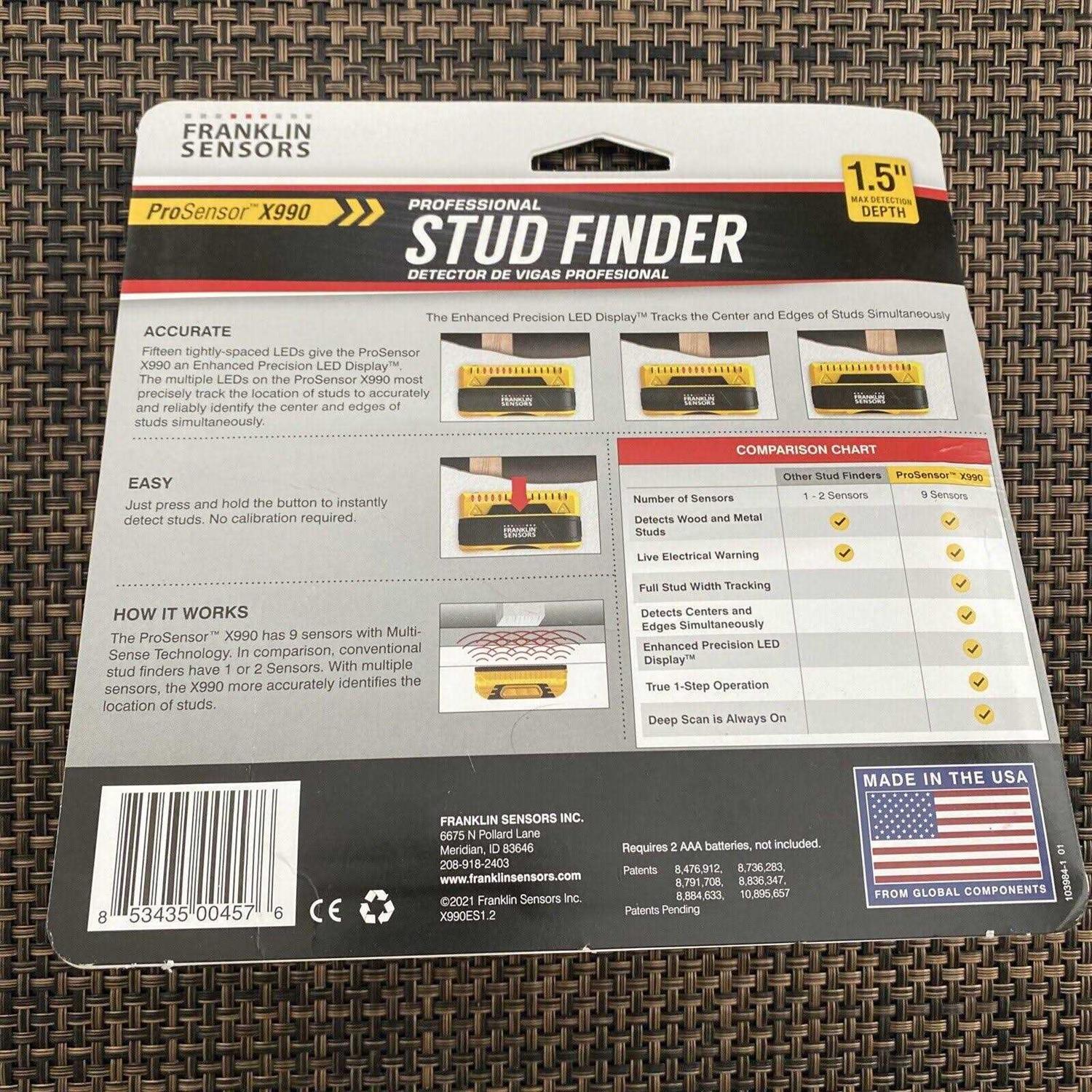 - Quick and easy, instantly find studs, no calibration required