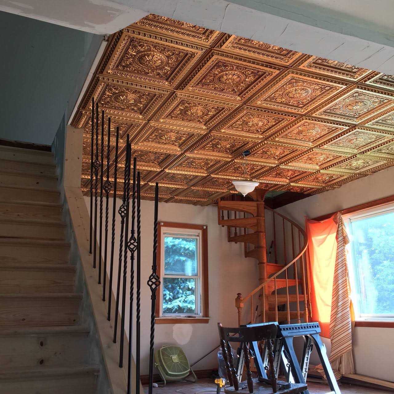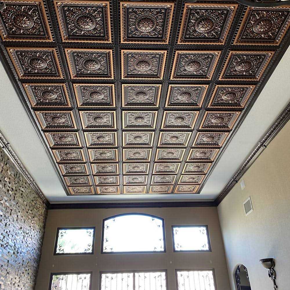 The La Scala Faux tin ceiling tile is a part of our From Plain To Beautiful collection. This Faux tin ceiling tile is sized at 2 ft. x 2 ft. and comes in a Antique Copper finish. It is suitable for both commercial and residential applications and can be installed by either gluing it over stable surfaces or dropping it into a grid system. The panels are constructed from lightweight PVC material, which provides a crisp design and a stunning finish.