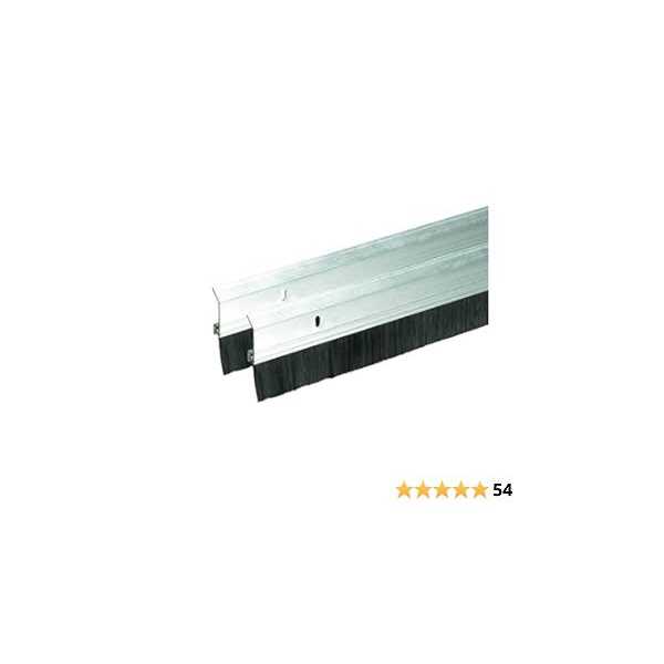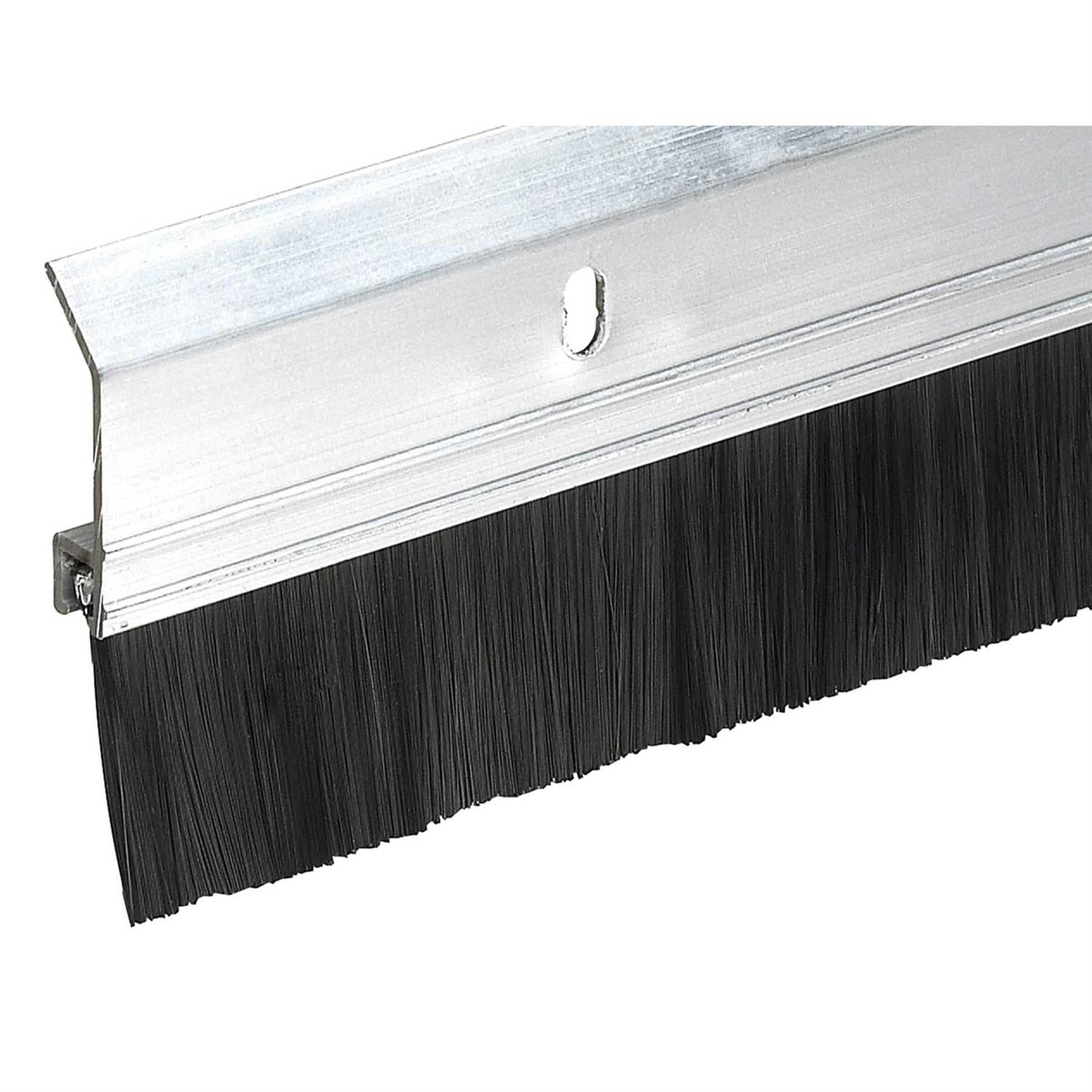 Thresholds by Frost King. Details:This Heavy-Duty door sweep is made of Heavy-Duty aluminum and nylon brush and can be used commercially or in residential applications. It is 36 in. x 2 in. and can seal gaps up to 5/8 in. this door sweep keeps warm air in and cold air out. It is installed only on the interior side of the door.