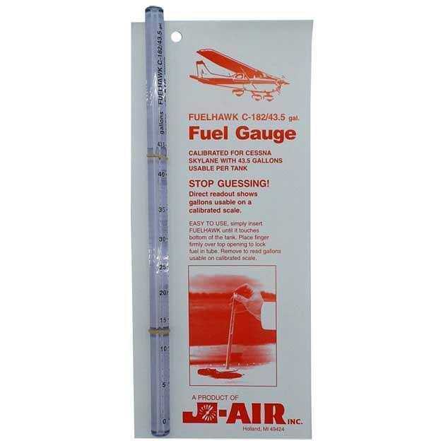 This dip stick fuel gauge is specifically designed for the Cessna 172 Skyhawk with standard tanks containing 19, 20, or 26.5 gallons of usable fuel. Please choose your size below. Made of heavy duty clear plastic that resists yellowing, fading, and cracking. Easy to Use: Simply insert the Fuelhawk until it touches the bottom of the tank. Then place your finger firmly over the top of the opening to lock fuel in the tube. Remove and instantly see how much usable fuel in U.S. gallons is inside the tank. The Fuelhawk is ideal for when the pilot must take a less-than-full fuel load due to weight considerations or measuring how much is really in the tank. Made In USA Only for use in aircraft with the specific make, model, and usable fuel capacity indicated. Aircraft must be parked on a level surface. The user is solely responsible for determining fuel on board and that Fuelhawk readings are accurate. Consult your AFM/POH for official Fuel System Information – Fuelhawk is a secondary means of estimating fuel quantity.