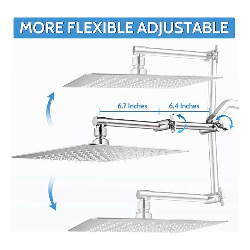 This is a dual shower head set – The rain shower head is 10 inches, which can provide you with a large-range shower The handheld wand makes washing your little kids and pets with ease – If you just want to wash your hair,the handheld helps water saving certainly you can choose use the rainfall shower head and wand separately or together It is worth mentioning that the 13 inches flexible extension arm with a unique design – You can adjust it with any height and angles you need The free spinning locking collar allows you to tighten the extender in a correct position About the 3-way diverter and 71 inches long hose – The diverter convert water from rainfall shower head and handheld conveniently71 inches long hose keeps you away from winding or tangling The hose can be stretched from 70A to 75A, which means you have a longer shower distance – This set is all metal construction which is more duarble