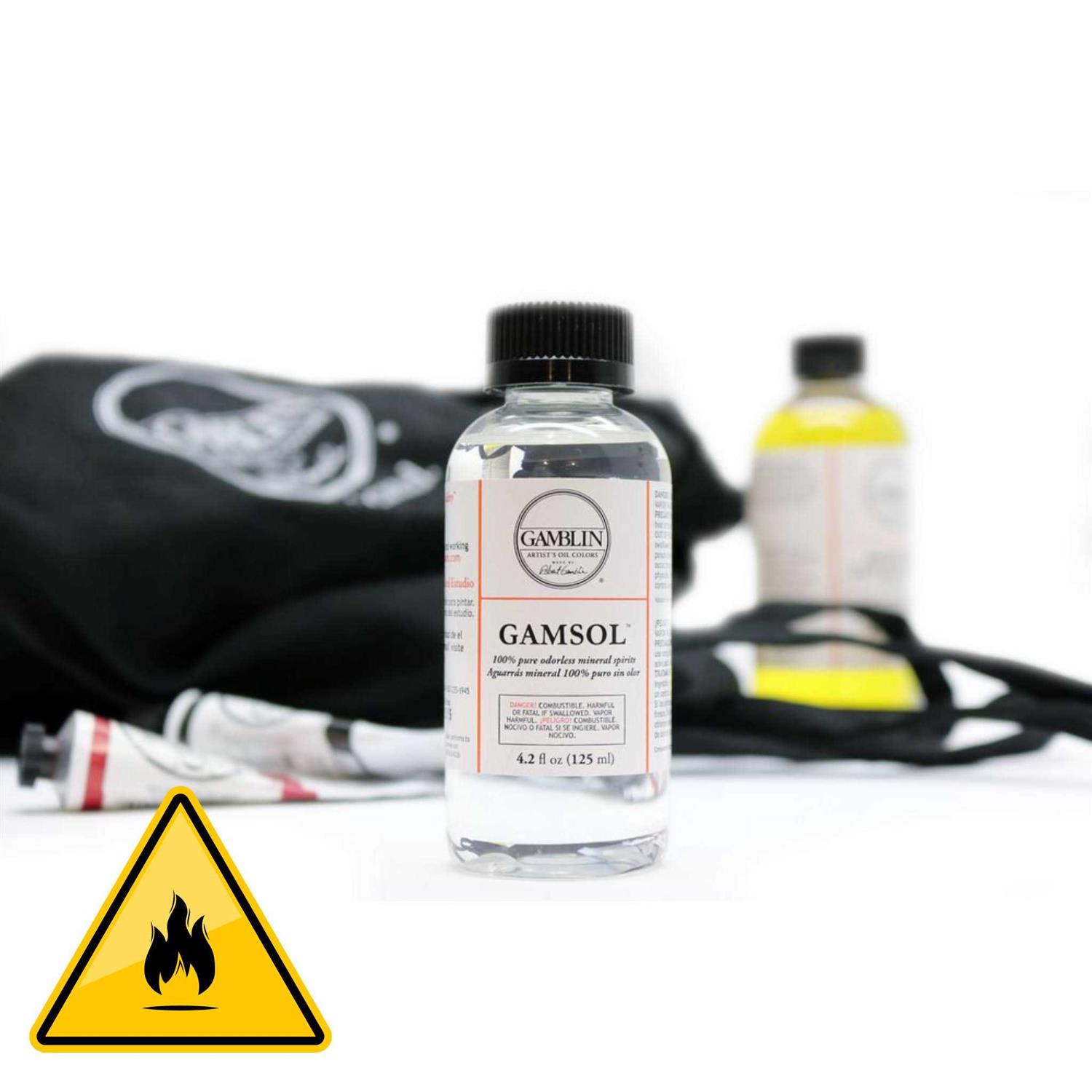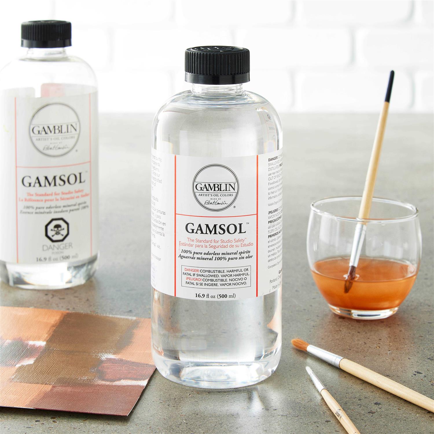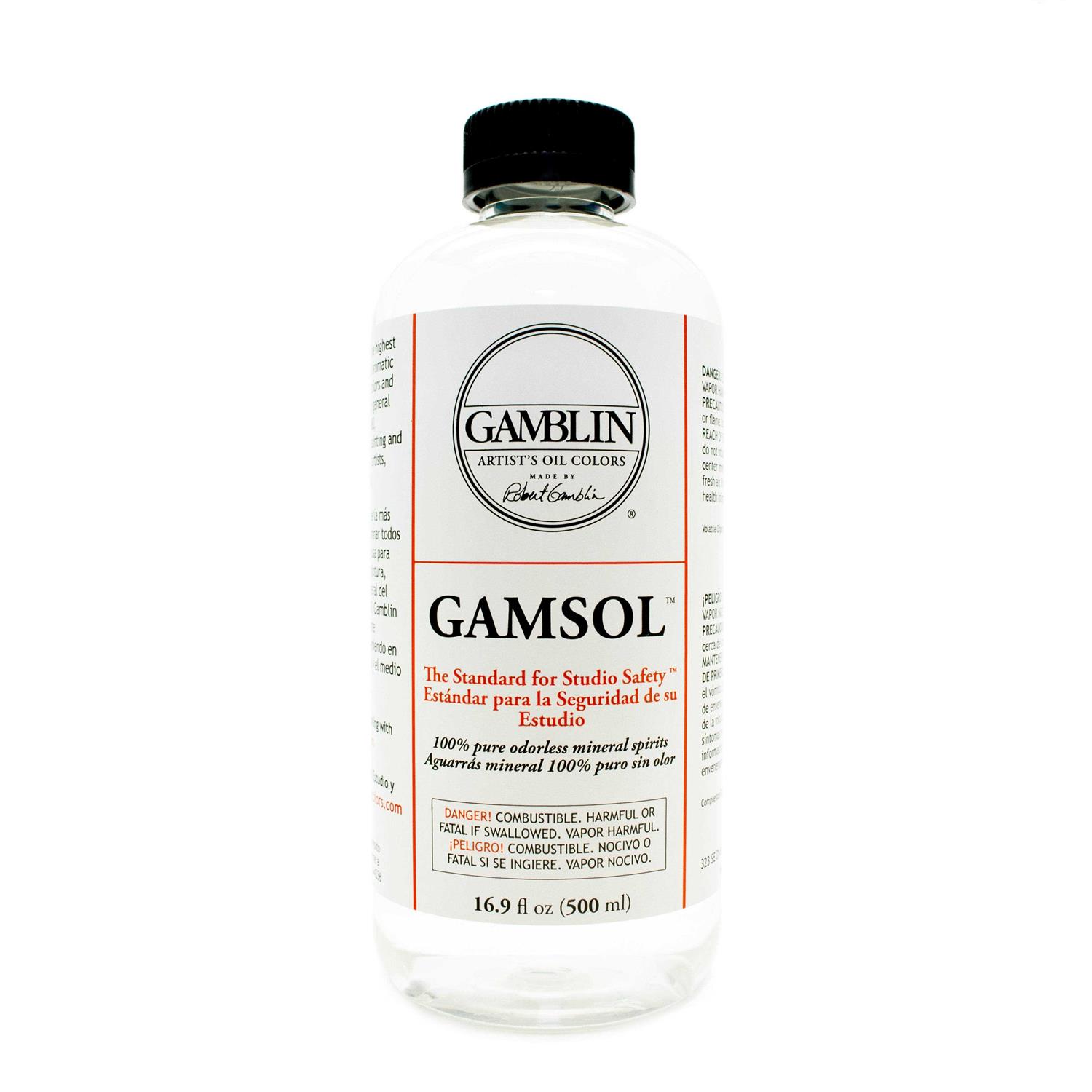 Pure, odorless Gamsol mineral spirits is the standard for studio safety. Gamsol has freed a generation of artists from the exposure to strong solvents. It is an odorless mineral spirit of the highest purity, having been highly refined to remove aromatic components. Gamblin Gamsol is the safest solvent that allows artists to work in traditional and contemporary techniques without compromise. A little goes a long way. Use Gamsol for thinning oil colors, modifying painting mediums, printmaking, and studio clean up. Bottle contains 16.9 fluid ounces. Pure, odorless Gamsol mineral spirits is the standard for studio safety. Gamsol has freed a generation of artists from the exposure to strong solvents. It is an odorless mineral spirit of the highest purity, having been highly refined to remove aromatic components. Gamblin Gamsol is the safest solvent that allows artists to work in traditional and contemporary techniques without compromise. A little goes a long way. Use Gamsol for thinning oil colors, modifying painting mediums, printmaking, and studio clean up.