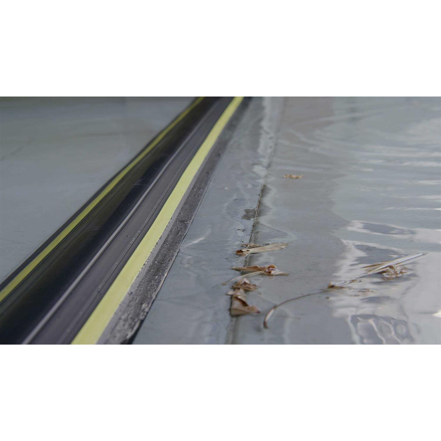 It forms a dam stopping up to 2″ of standing water by creating a watertight seal between the garage door and the floor, preventing water, leaves, dust, and debris from being blown under the garage door, ensuring a clean and dry environment. The flood barrier can also be used as a flood diverter by installing across a doorway or driveway. p Available in lengths from 8’3″ to 16’3” to suit all sizes of domestic and commercial doors, including up-and-over, sectional, roller shutter and side-hinged doors. The threshold can be safely driven over with most vehicles and has a yellow warning line to help prevent accidents. The threshold is made from a durable, flexible PVC material, which is eco-friendly. The material is odourless, UV stable, and will not decay or lose colour with prolonged exposure to water or sunlight.
